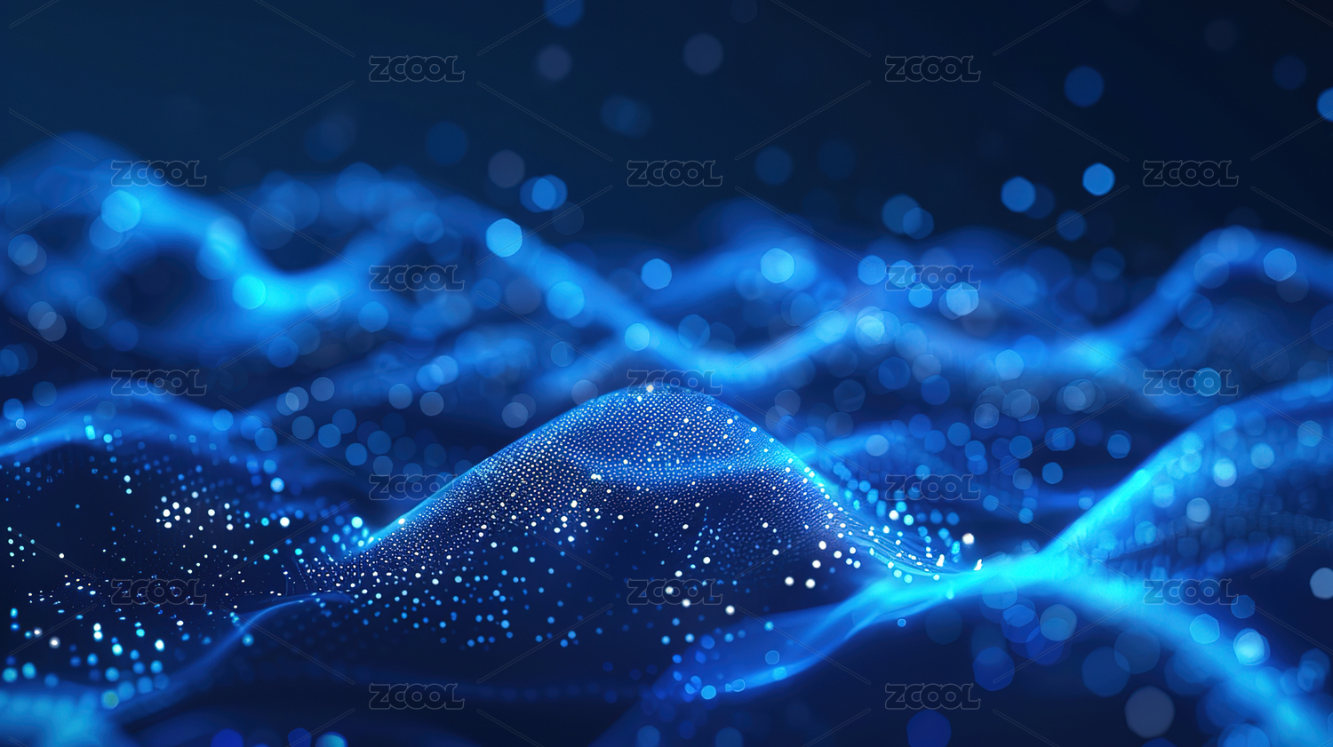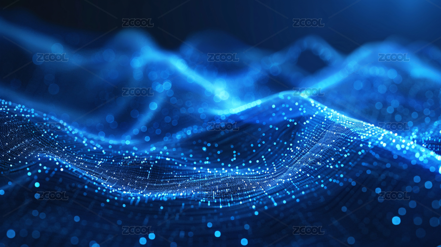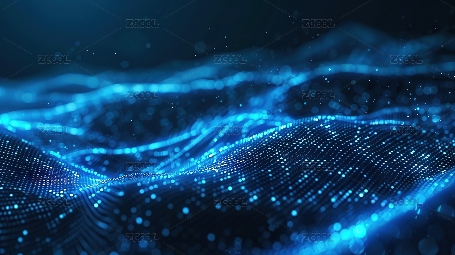 蓝色发光能量粒子和线条的明亮波抽象背景