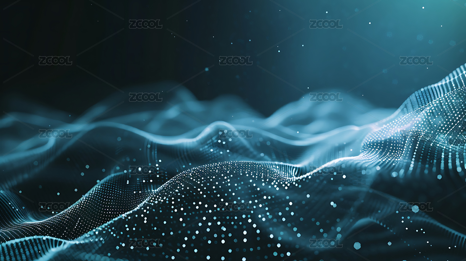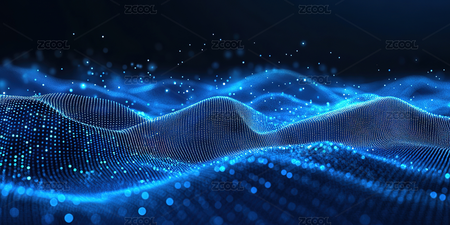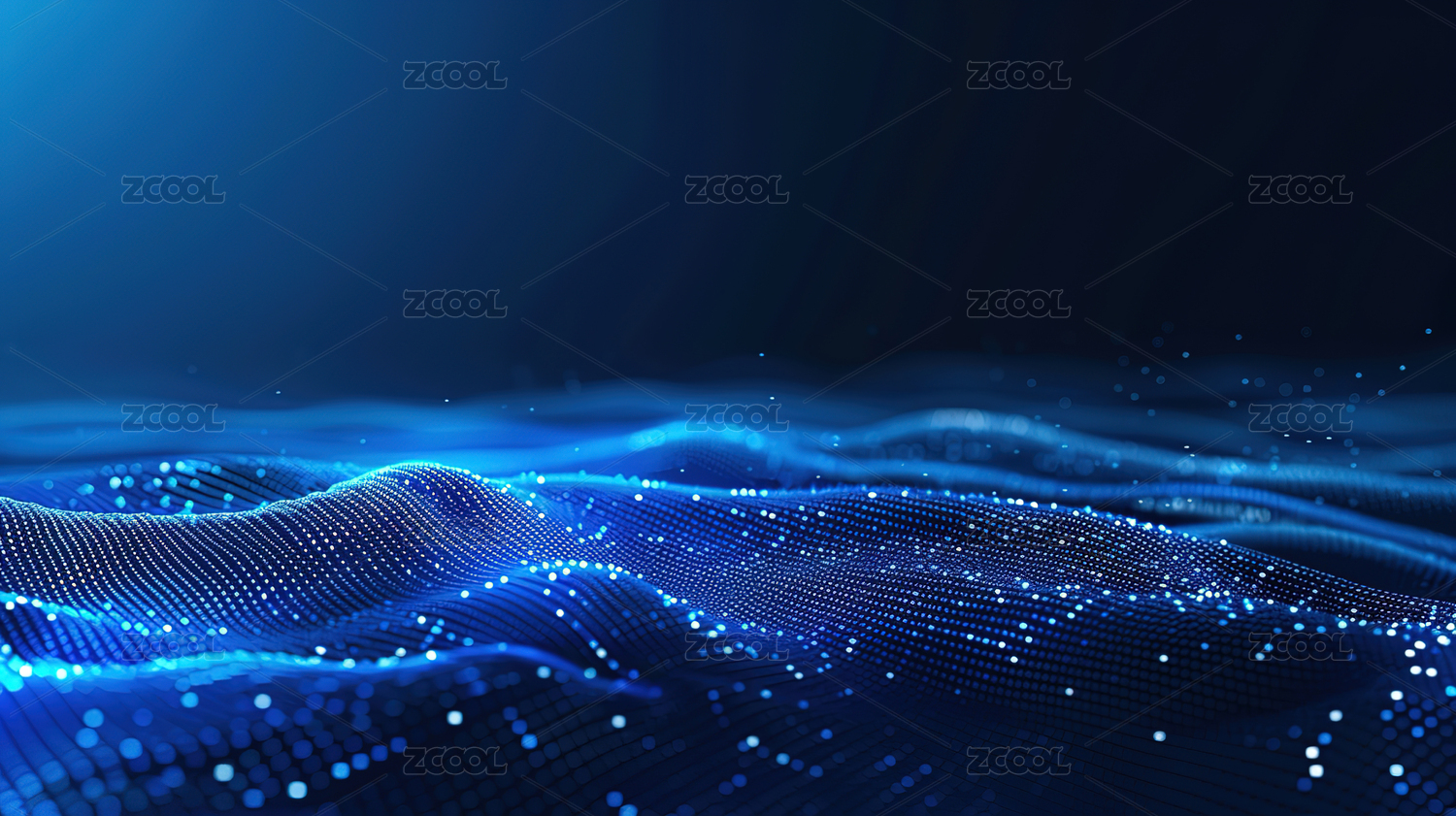 蓝色发光能量粒子和线条的明亮波抽象背景