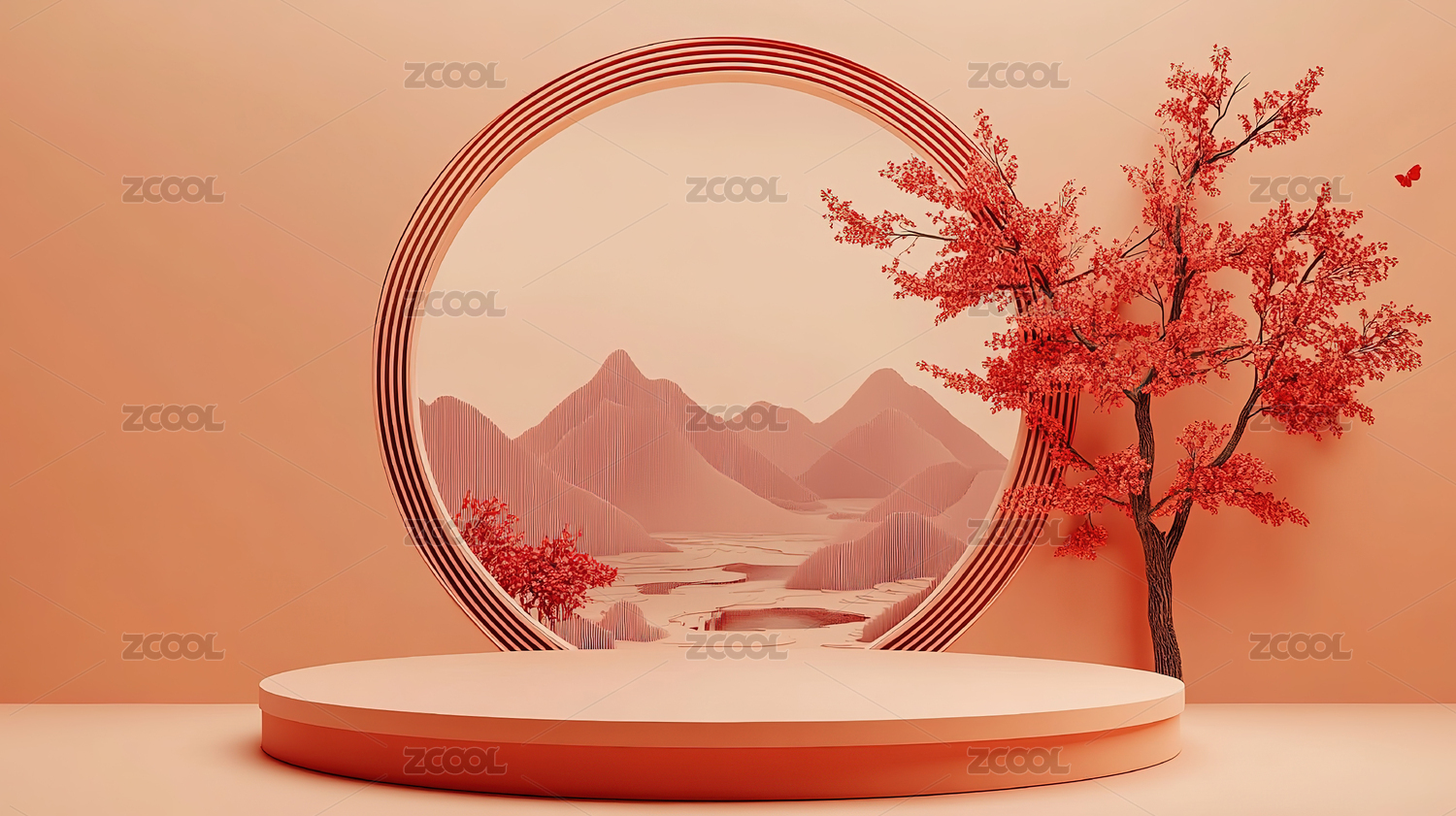 粉色樱花环绕的梦幻展台