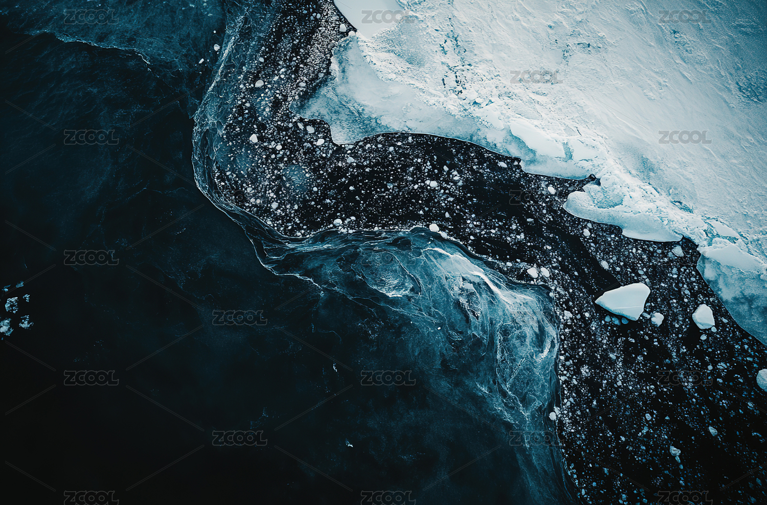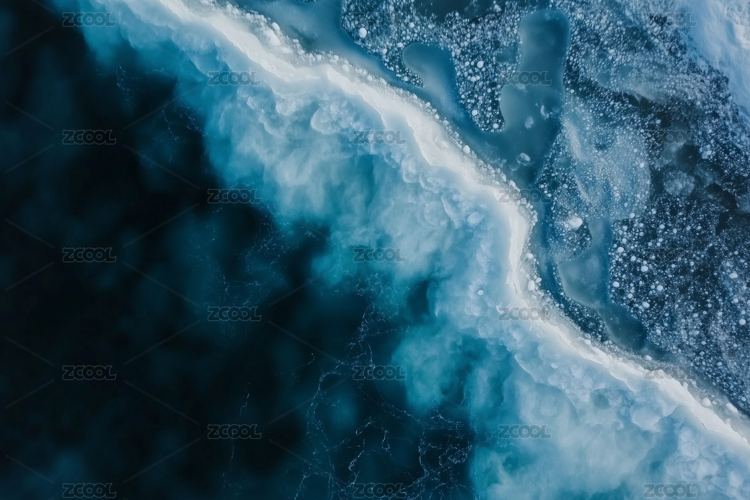 深蓝冰川纹理抽象艺术绘画