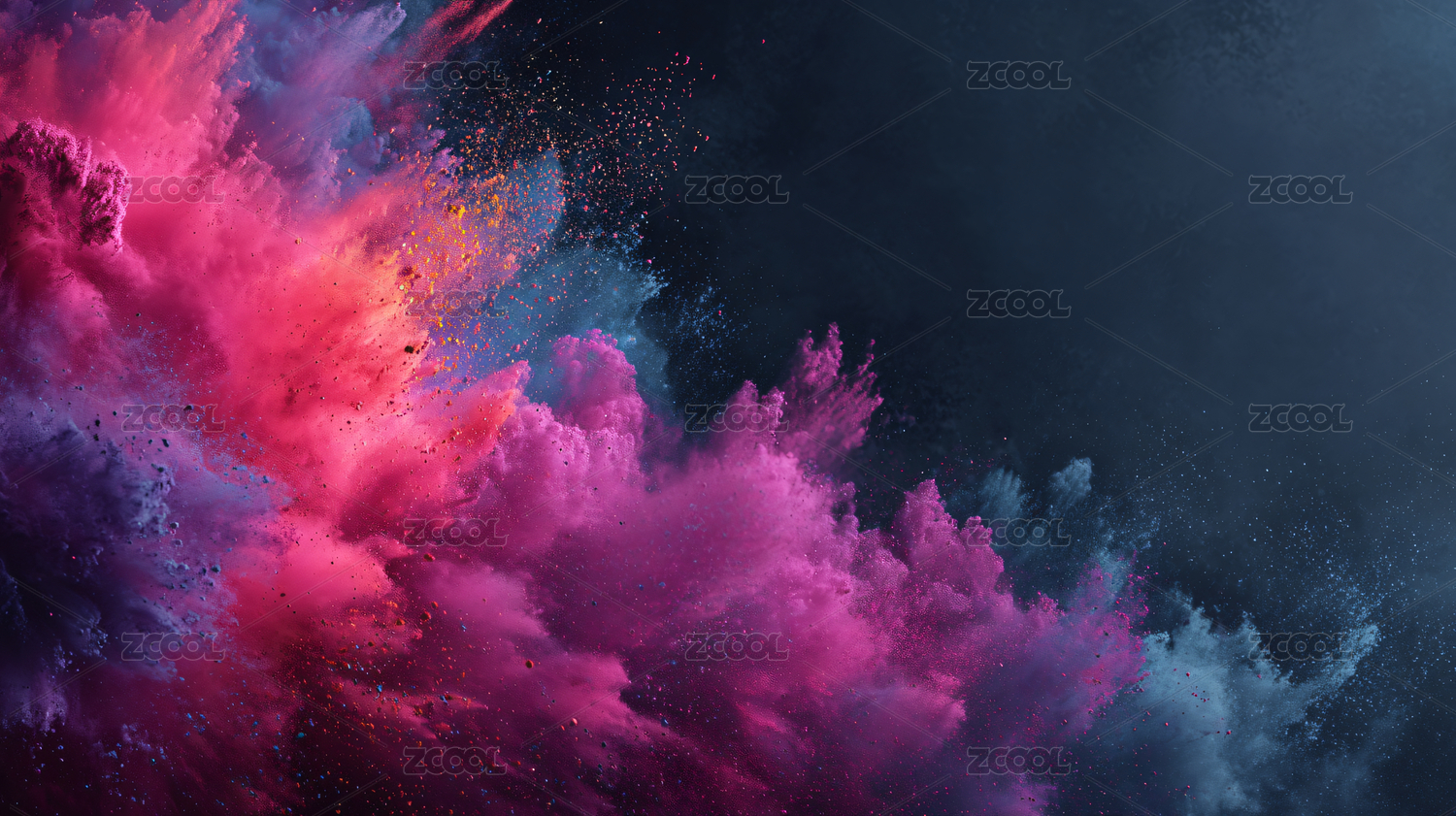 爆炸开的动态彩色粉末云