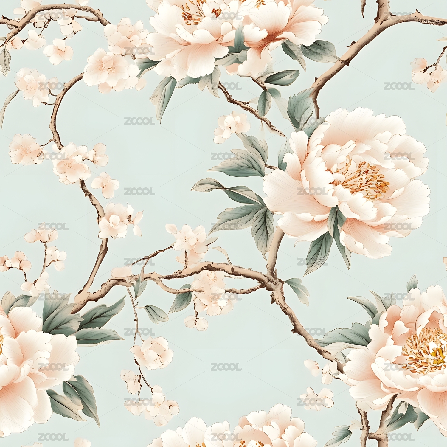 水墨牡丹盛开花卉中国风复古布料底纹图案