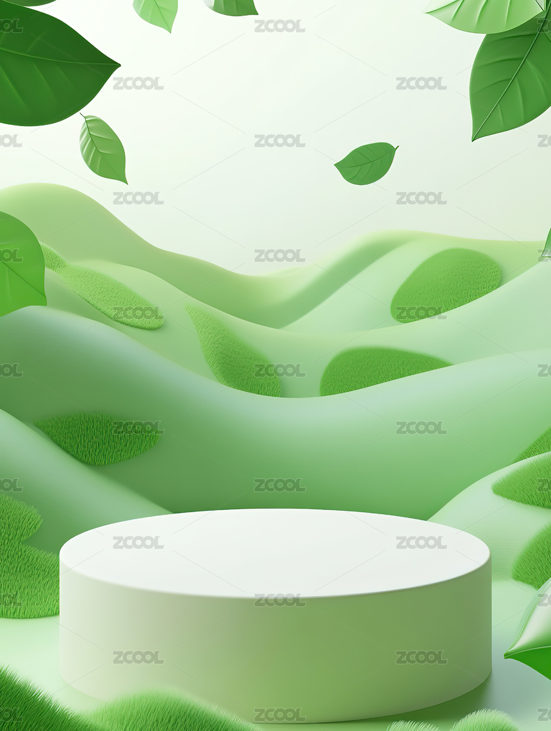 3D绿色卡通天空山峰风景圆形电商产品展台