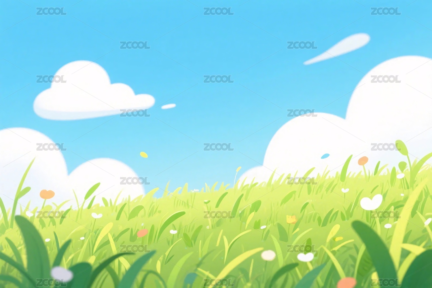 蓝天白云草地插画