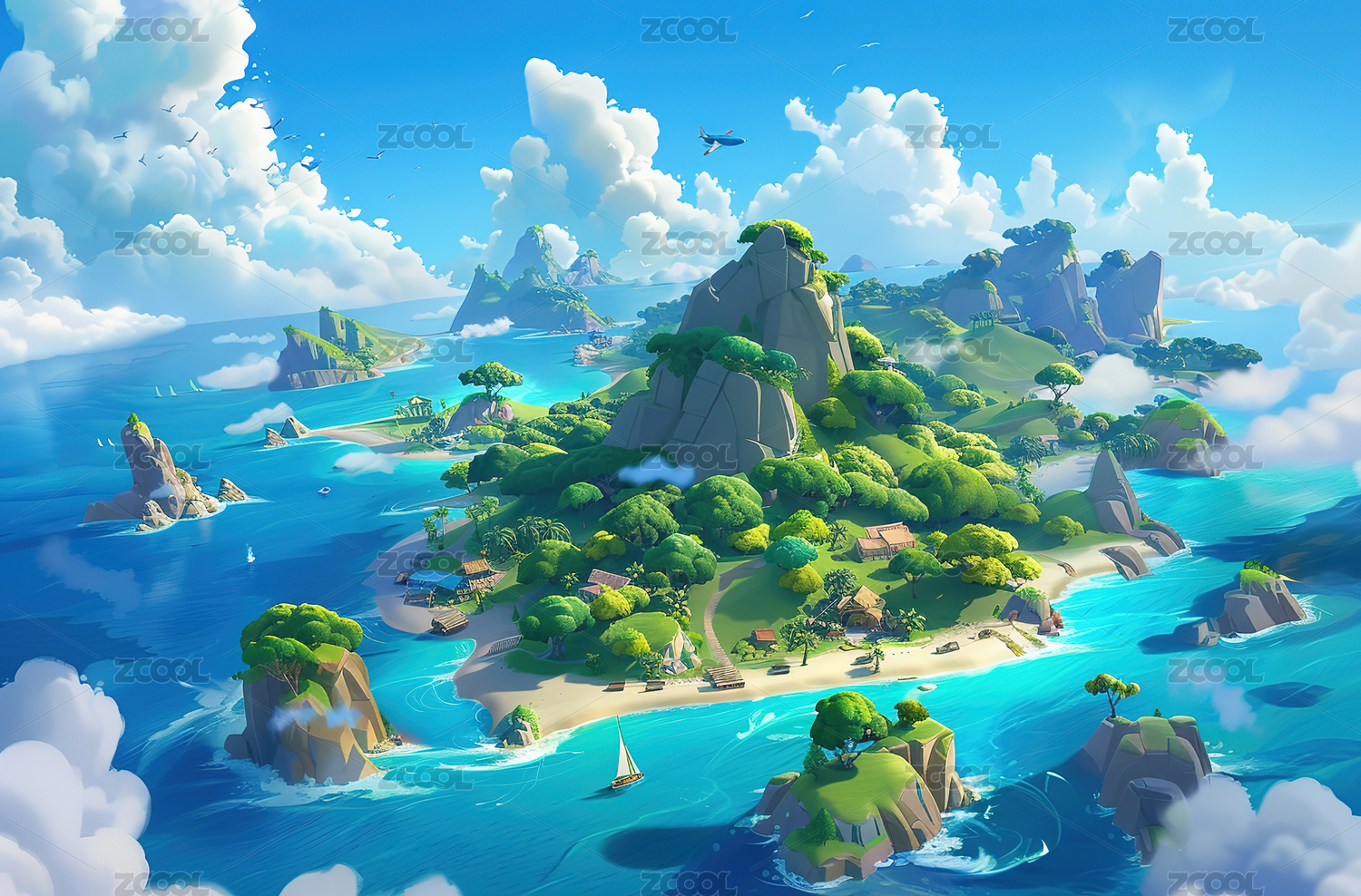 海岛椰子树3D渲染夏季热带立夏节气插图
