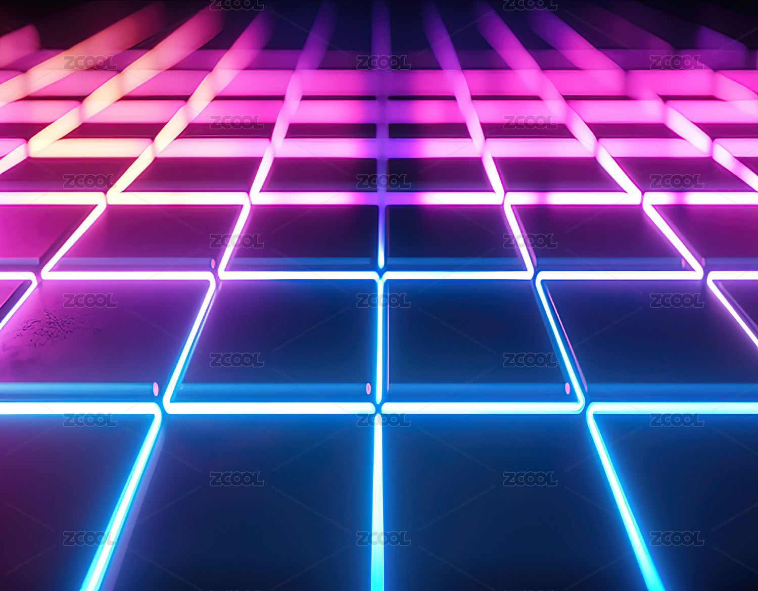不同几何形状的五彩斑斓的舞台霓虹灯万花筒房间背景素材