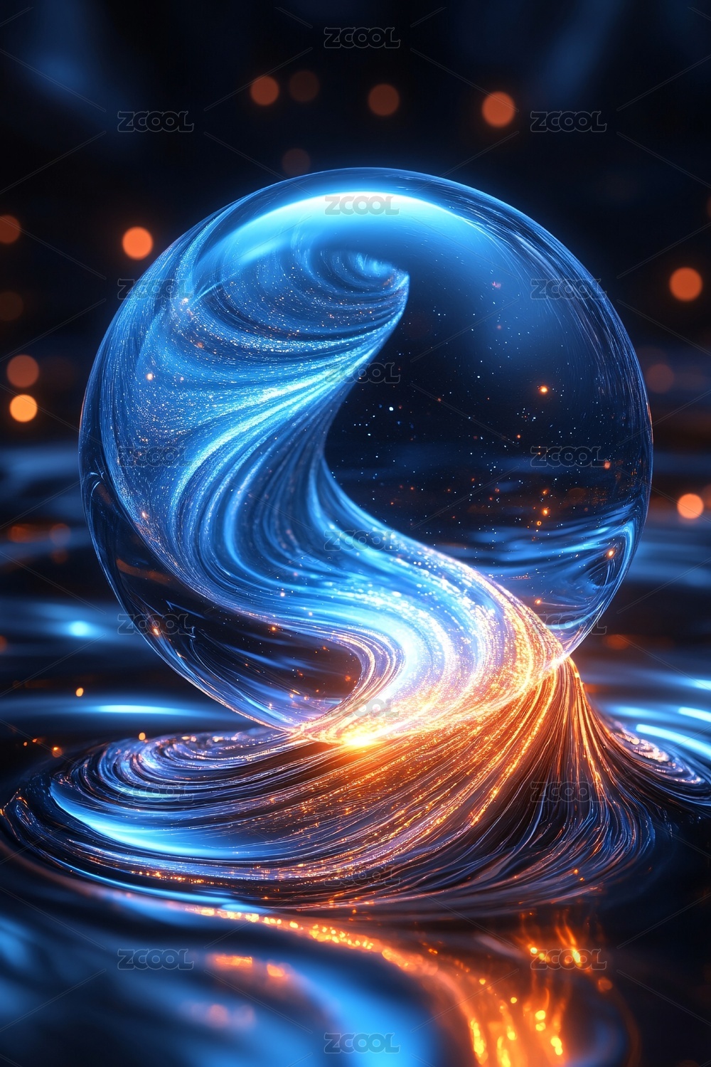 炫彩流光环绕的梦幻球体
