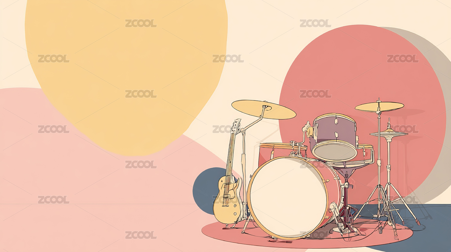清新,明亮,彩色,架子鼓,爵士鼓,手绘,插画,绘画,背景,涂鸦