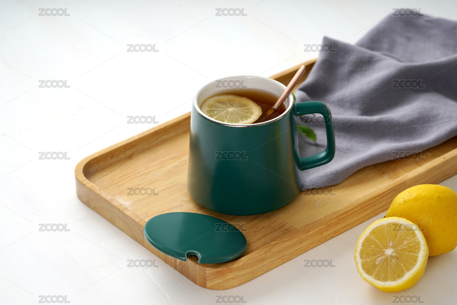 带盖的淡绿色茶杯