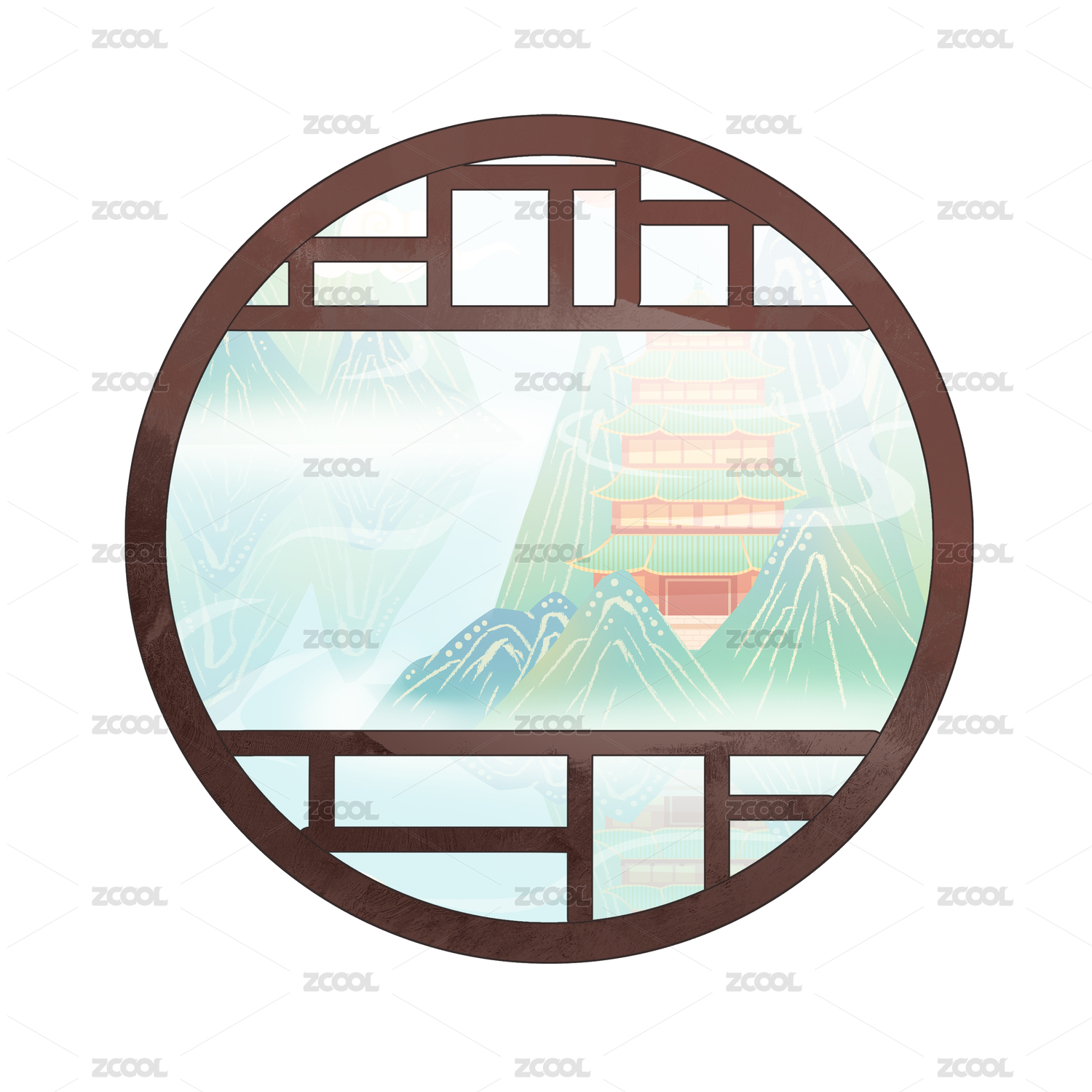 中国风古典窗户与山水
