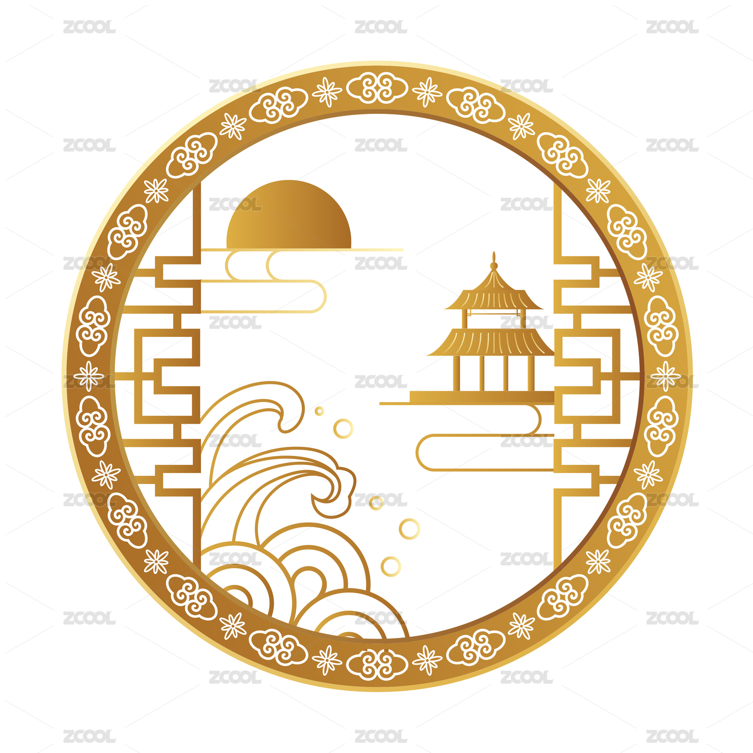 金色圆形中国风窗户剪影