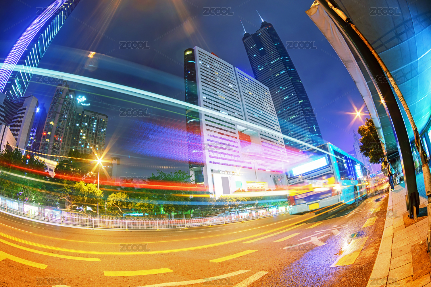 上海城市夜景,飞驰的汽车尾灯形成的光的轨迹