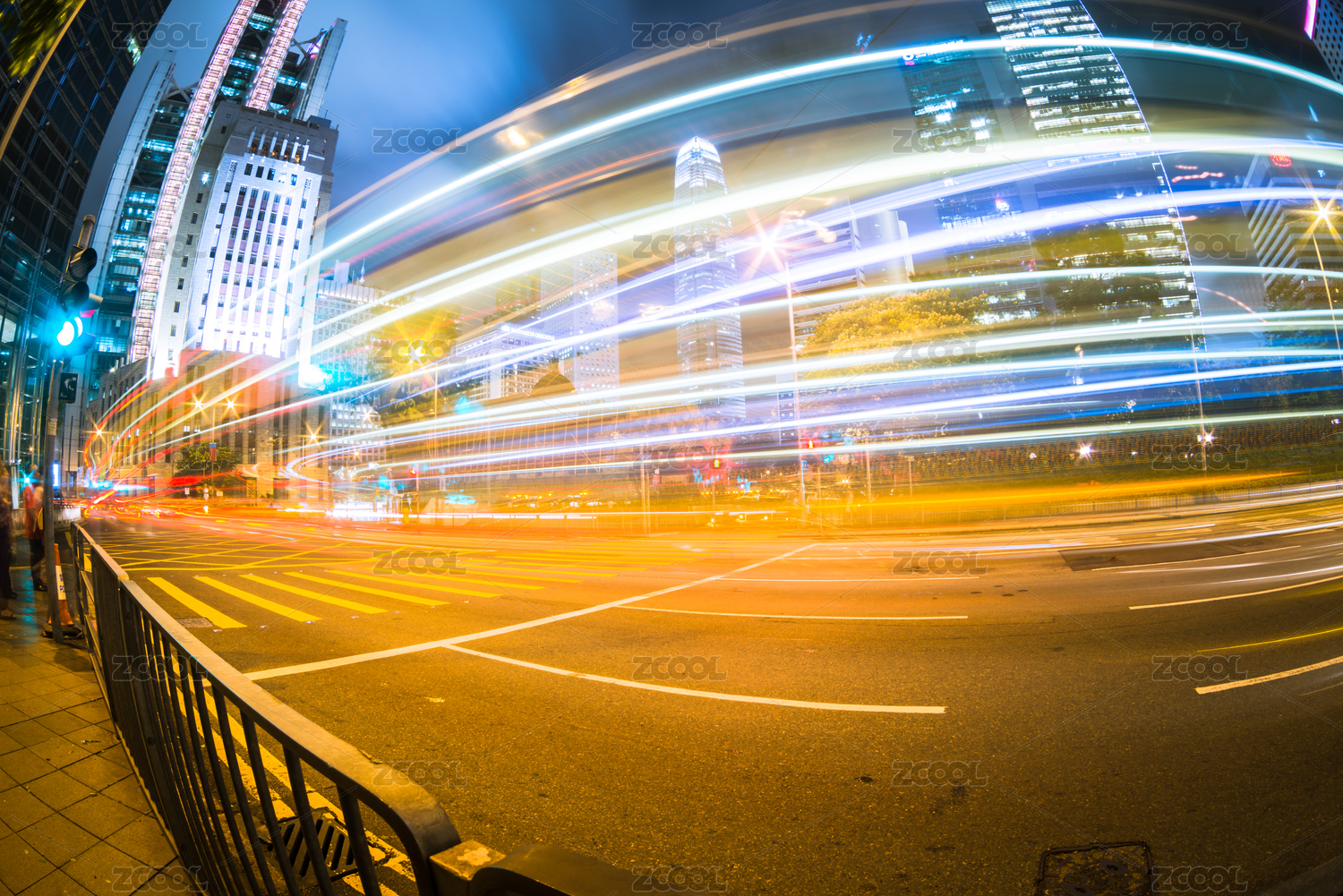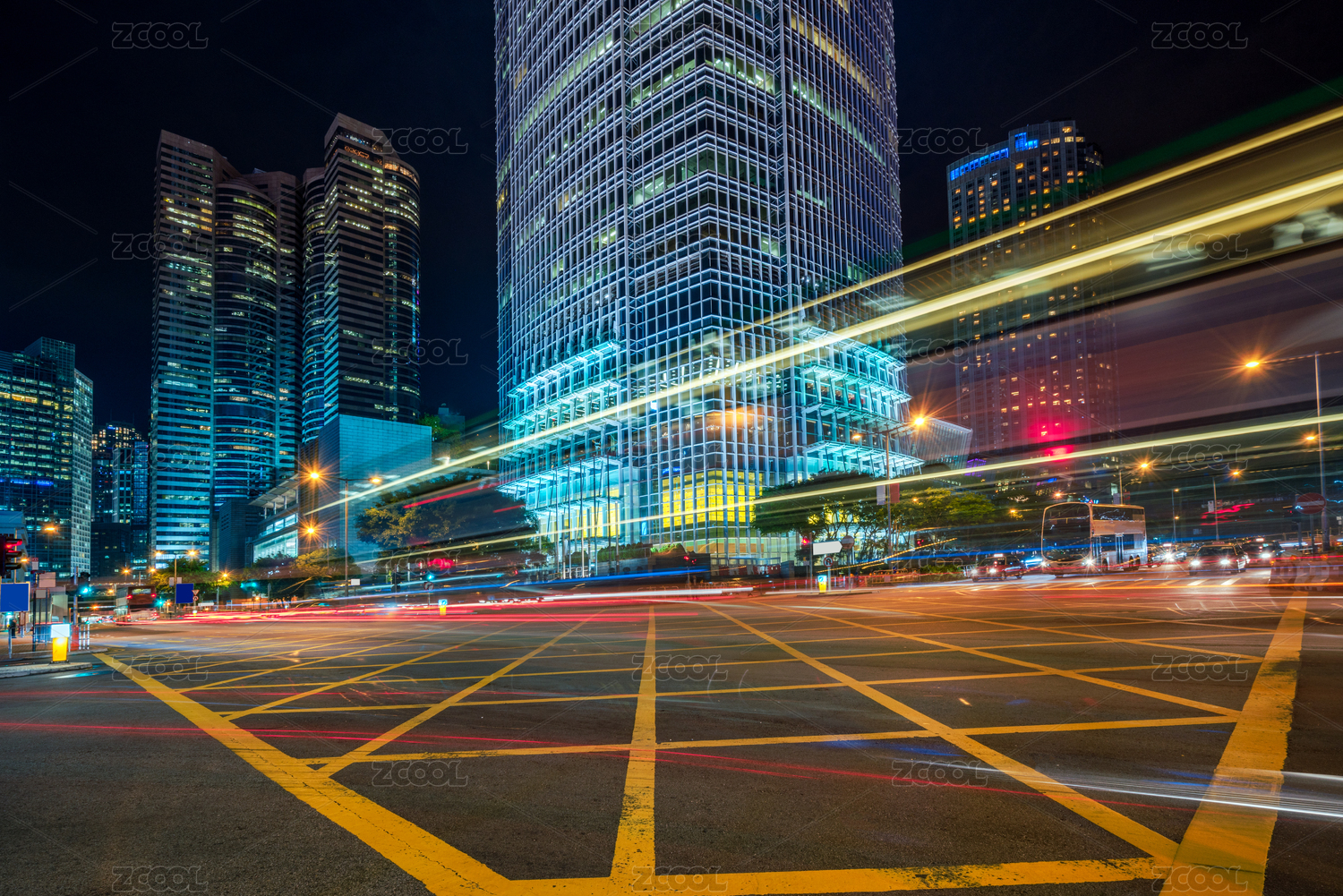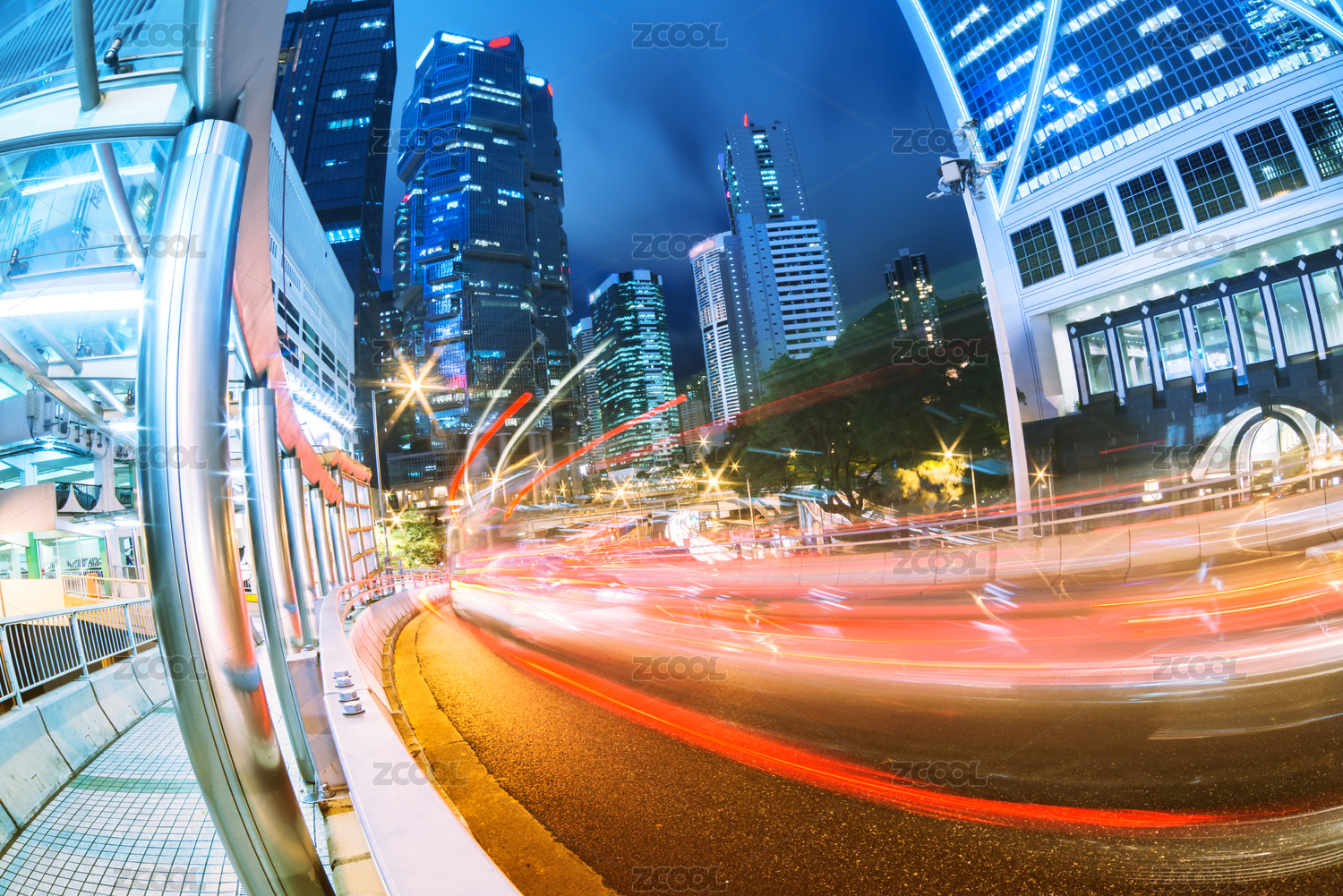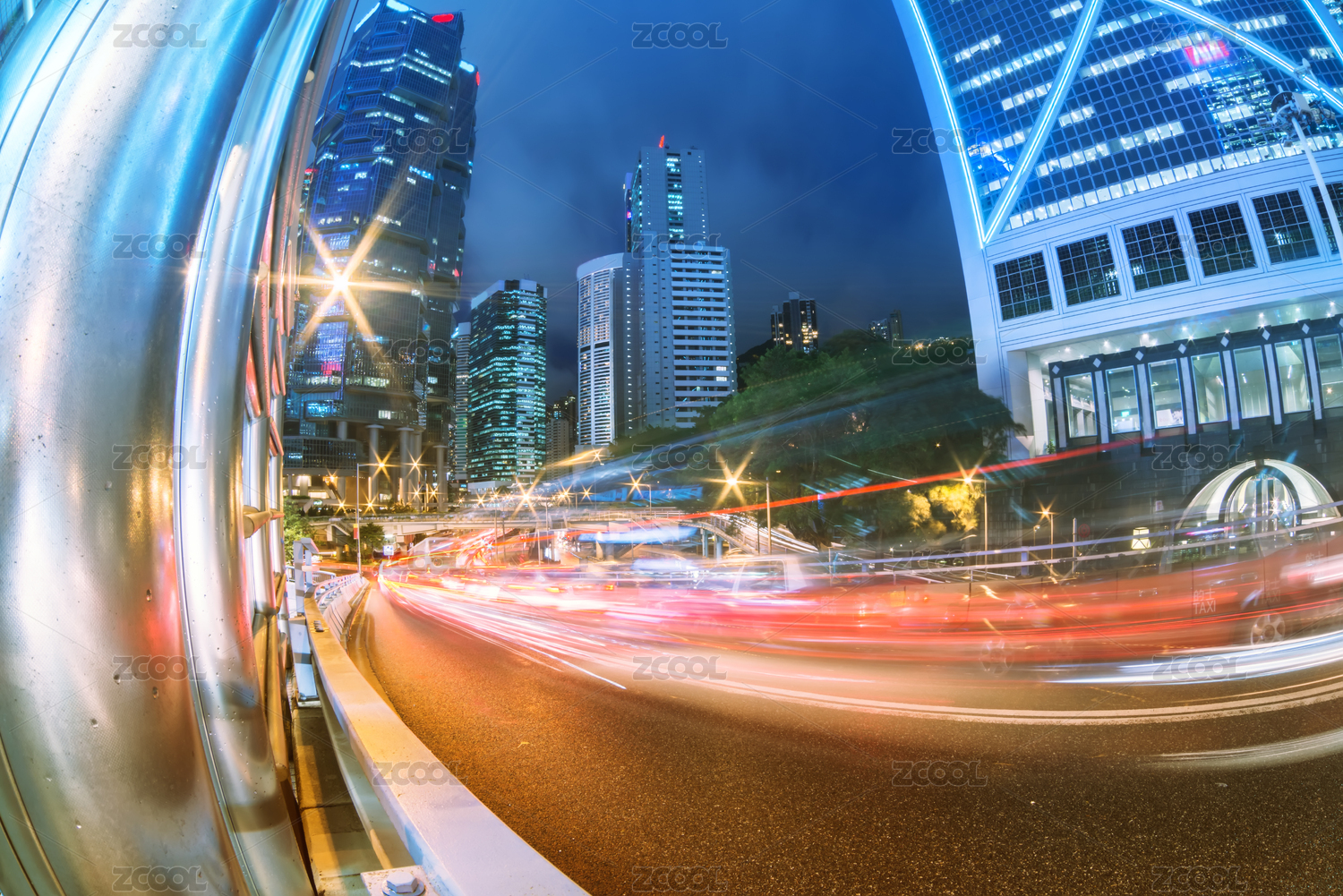 香港夜景,飞驰的汽车尾灯形成的光的轨迹