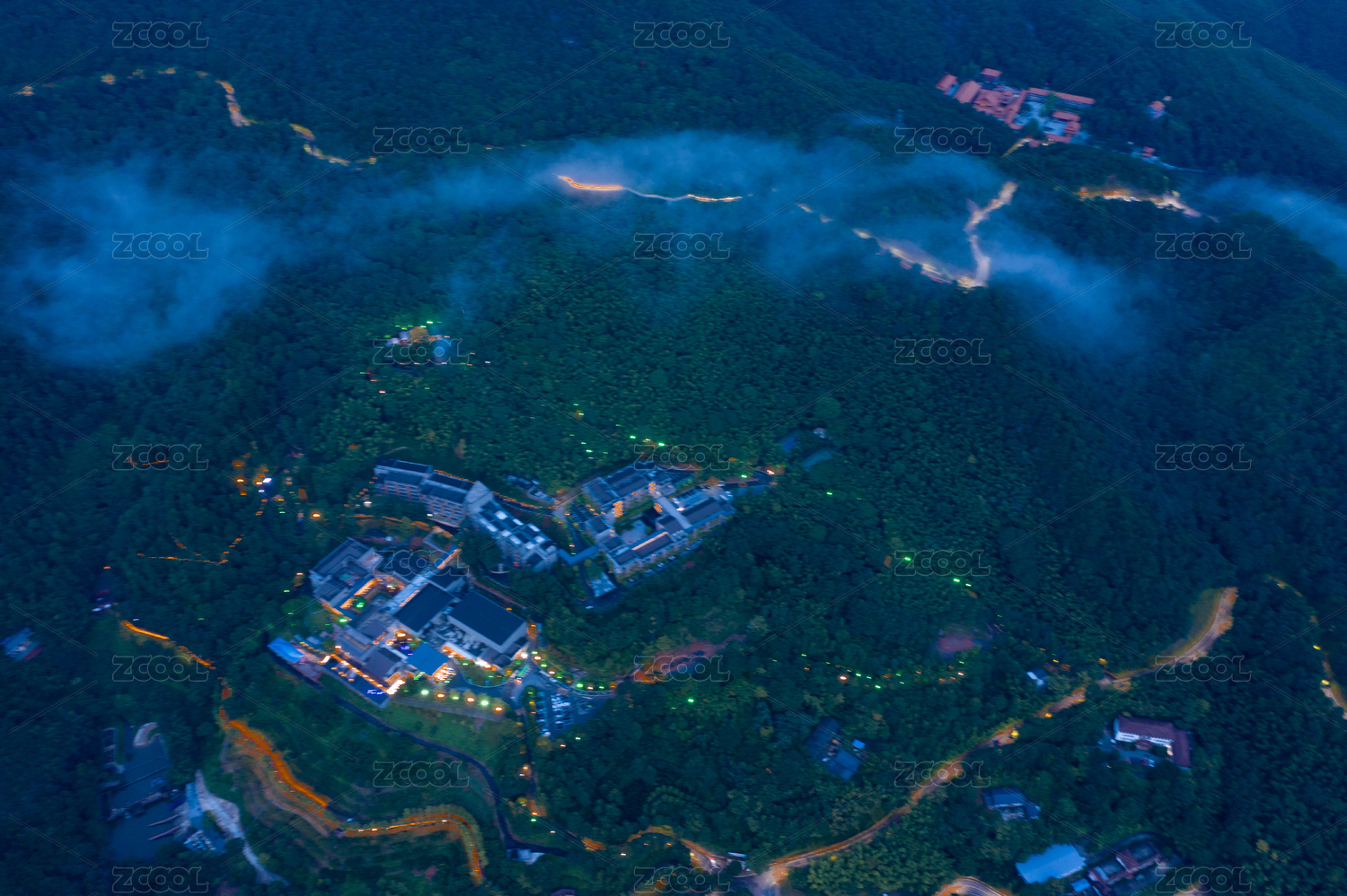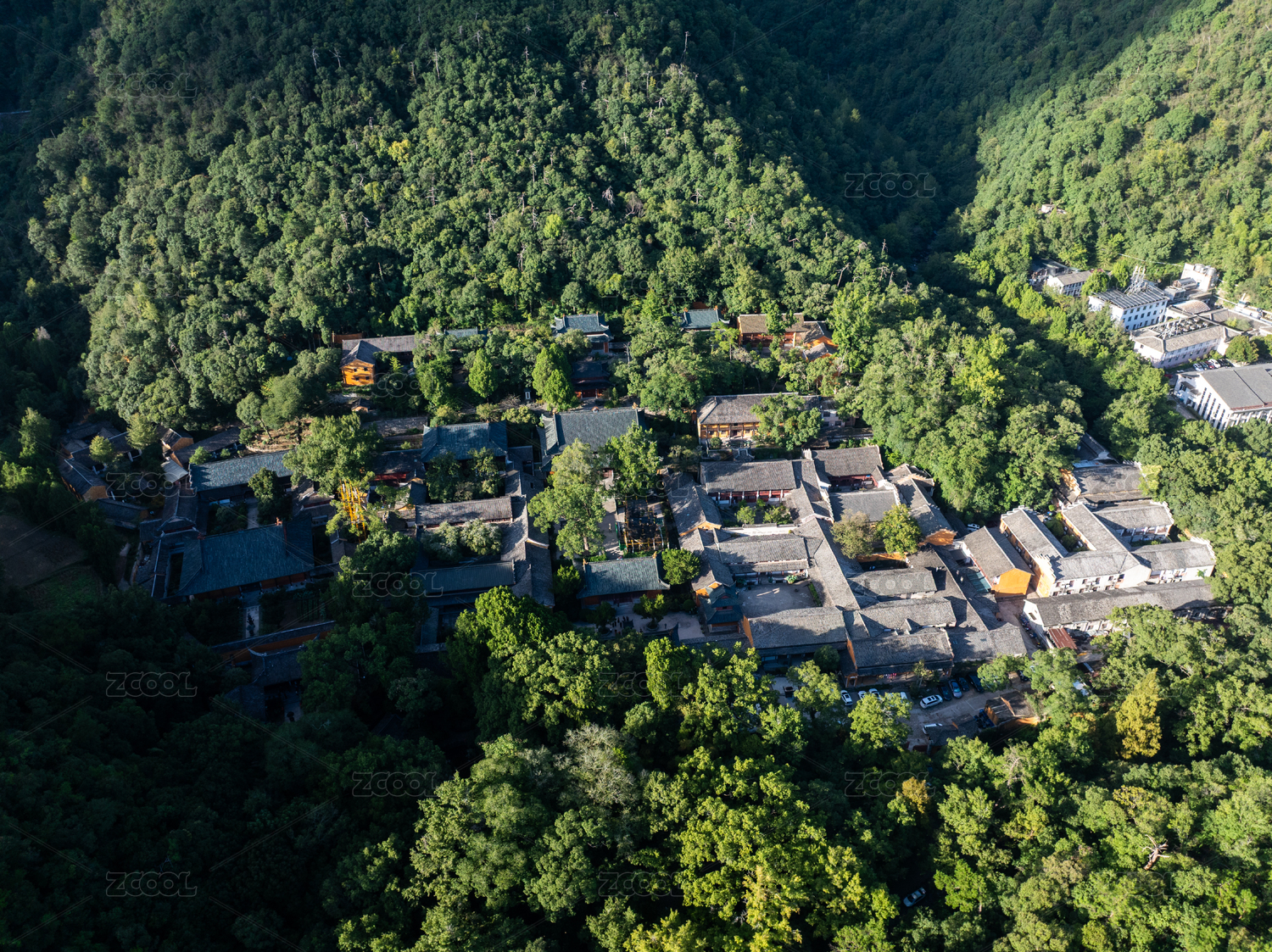 山谷寺院建筑群航拍图