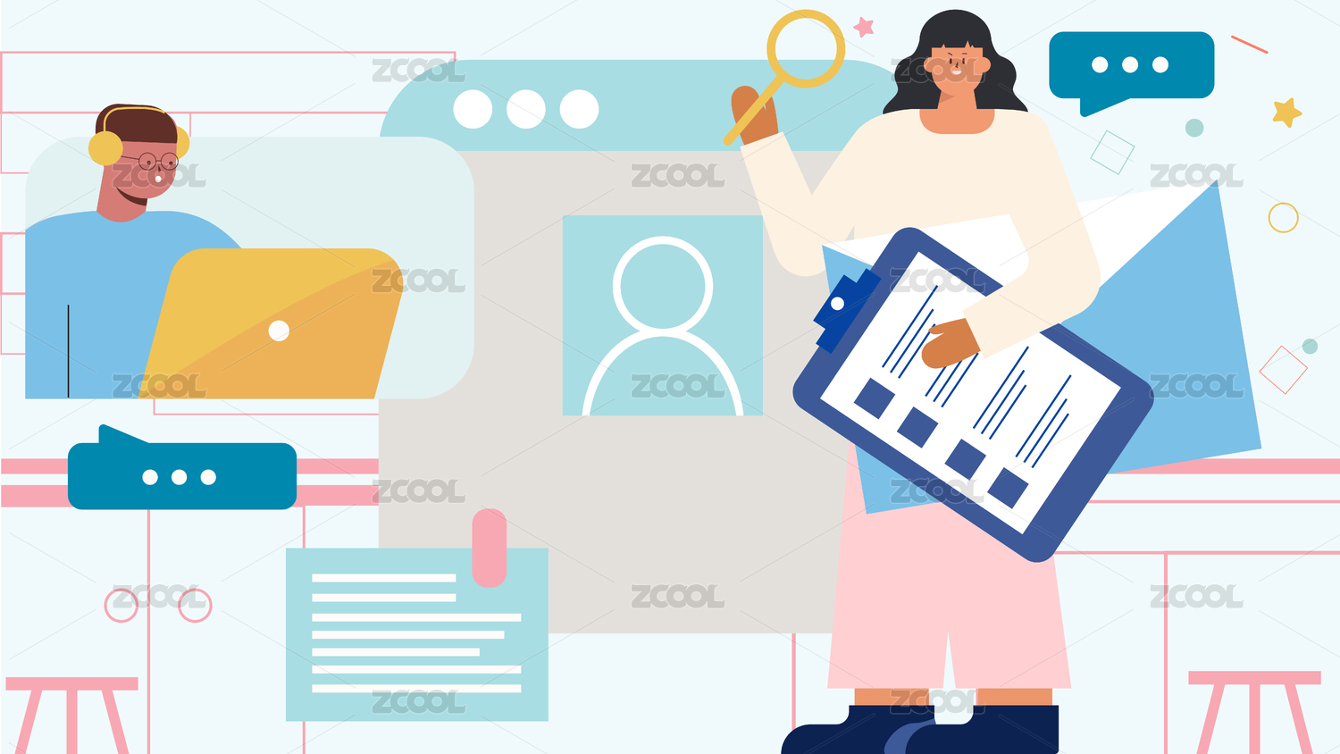 白领线上协作一起完成工作提高效率清新,矢量扁平概念插画