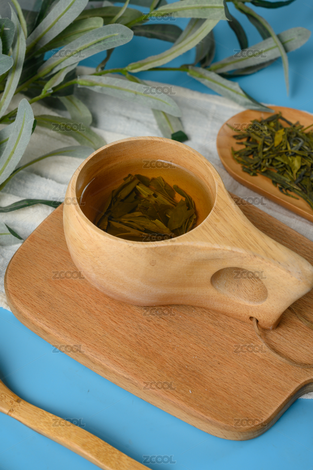 桌面上的杯子里的甘甜可口的雀舌茶