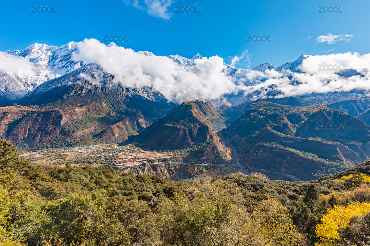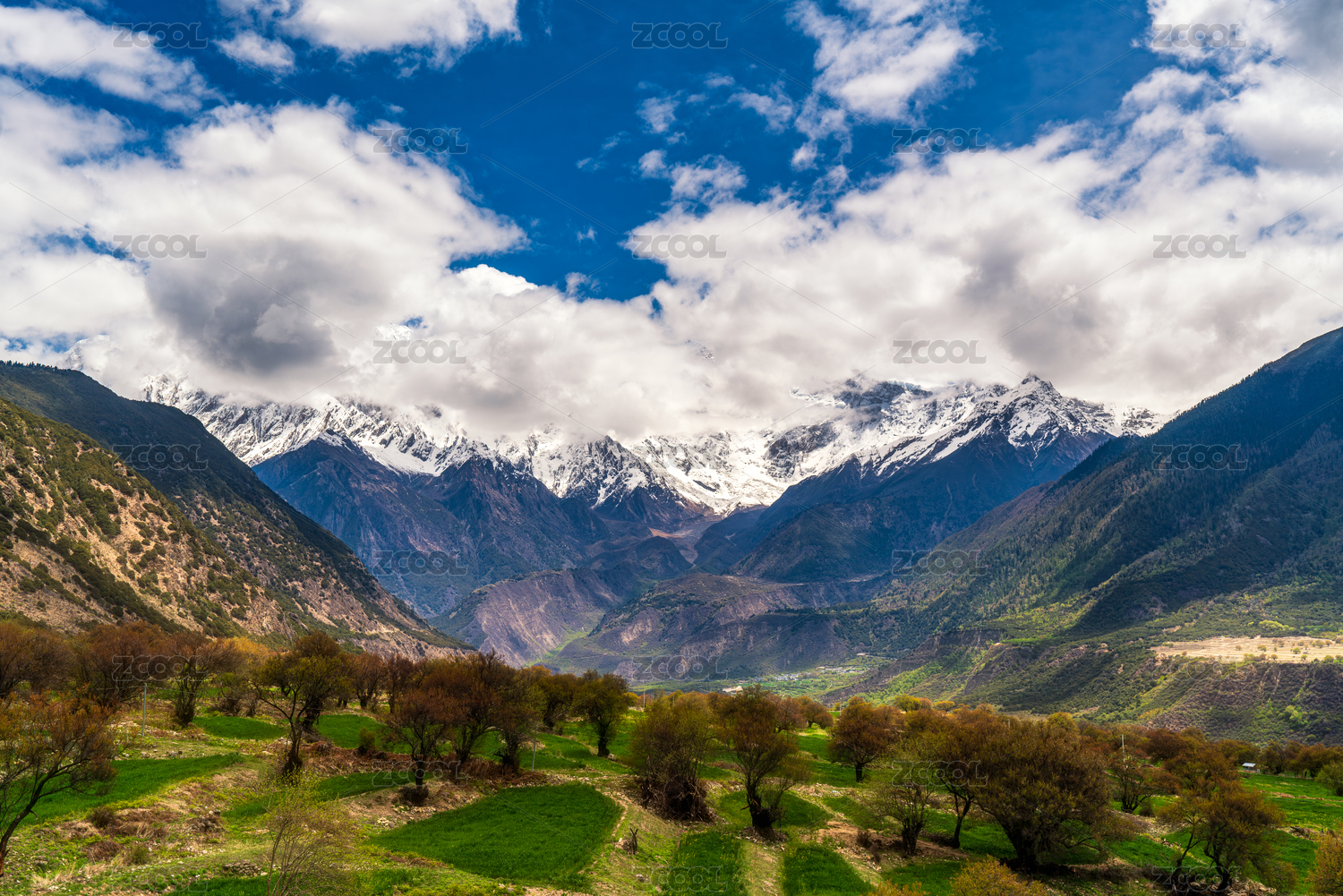 中国西藏南迦巴瓦高原风景雪山草原蓝天白云