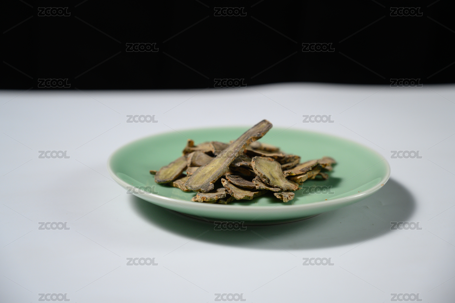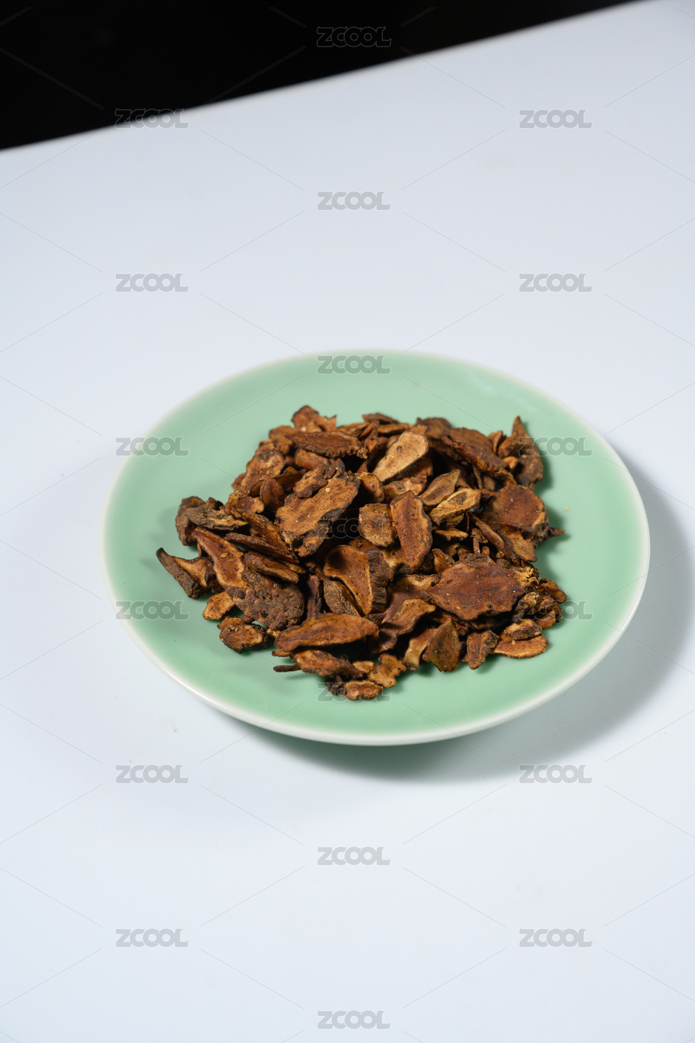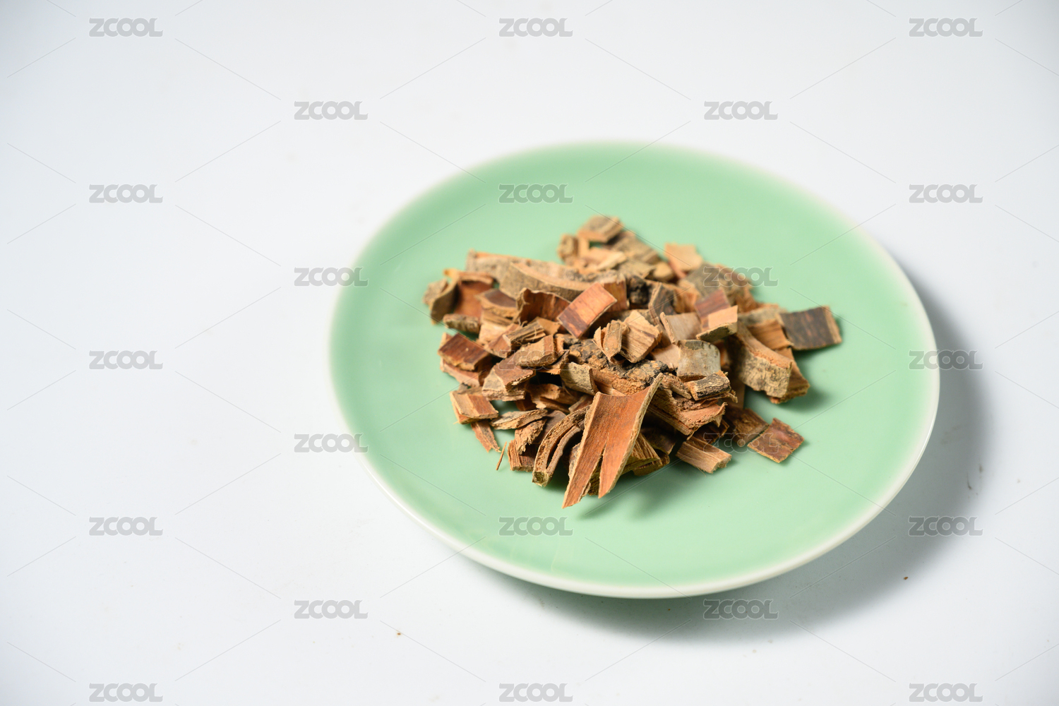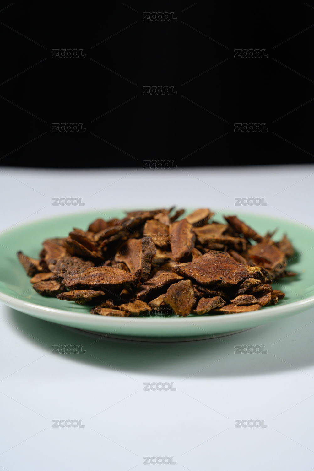 桌面上的盘子里的干爽的秦皮