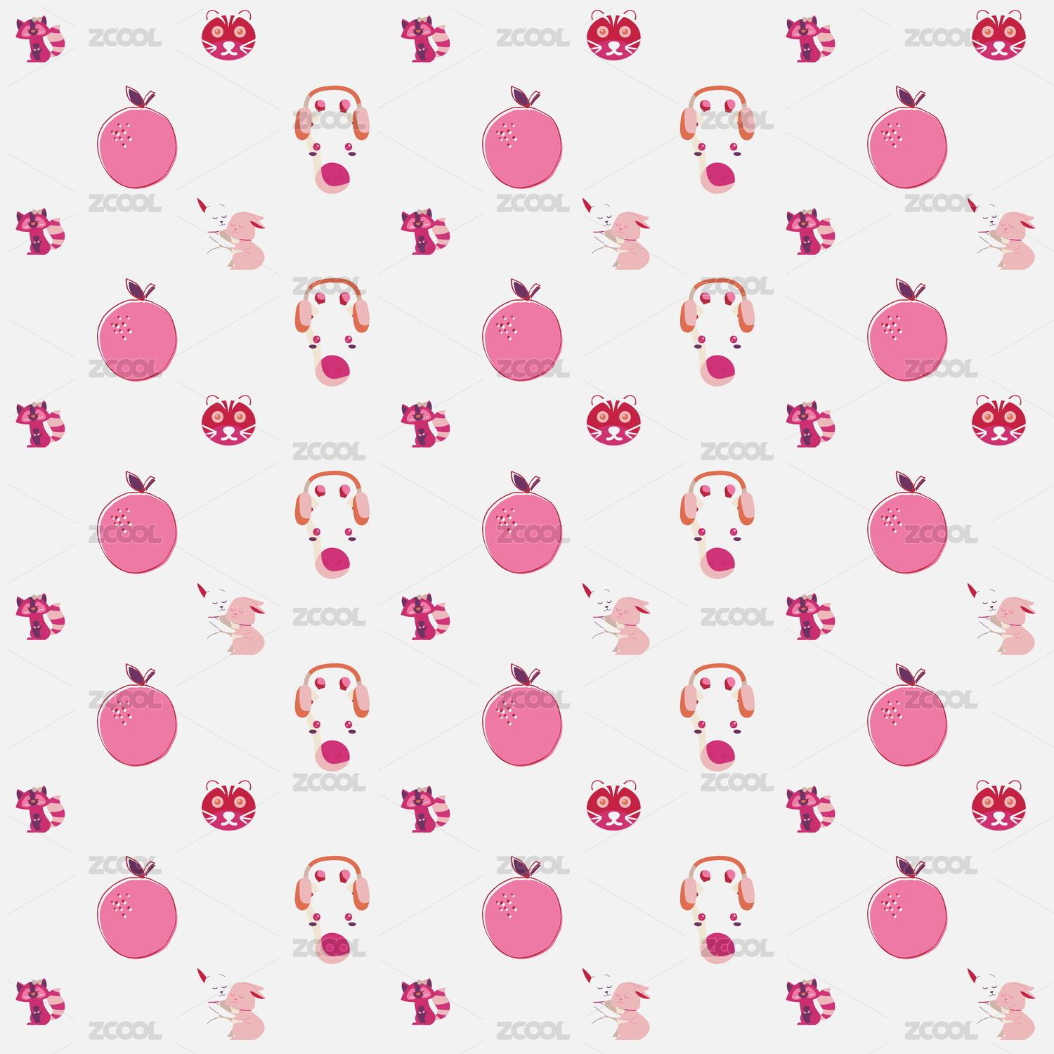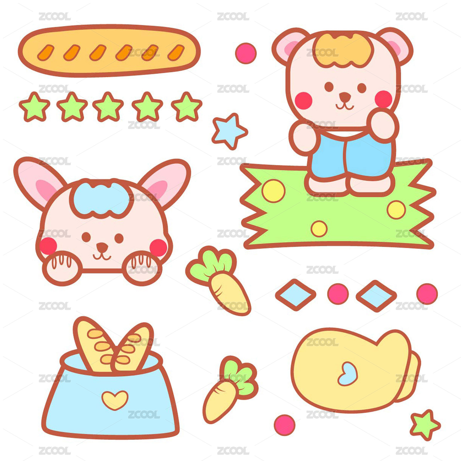 可爱清新小兔喝奶茶彩虹草莓格纹手绘插画