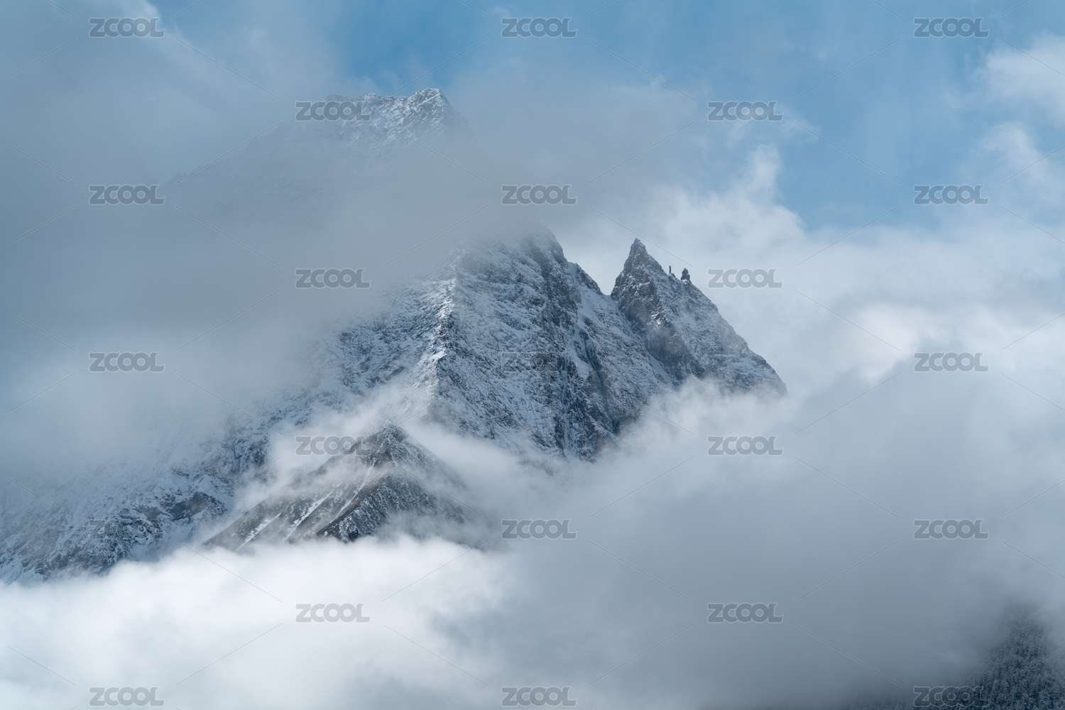 云南迪庆德钦县梅里雪山-云雾笼罩的神女峰