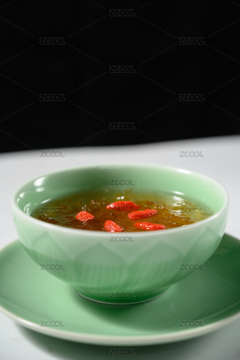 桌面上的盘子里的美味可口的冰糖炖桃胶