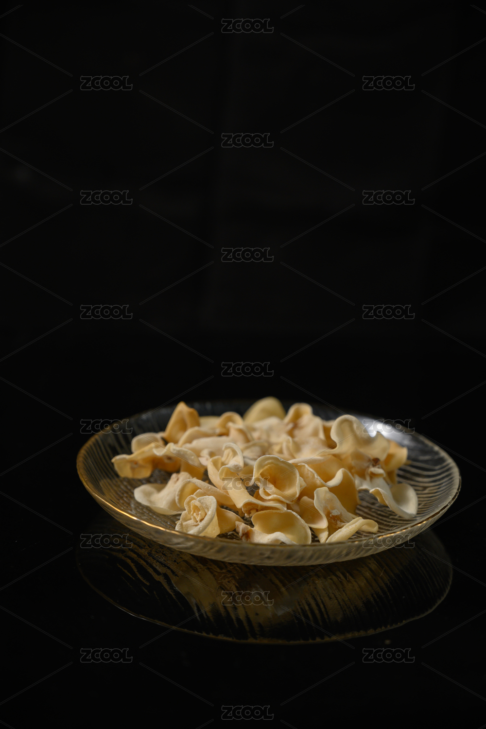 桌面上的盘子里的美味可口的干白玉木耳