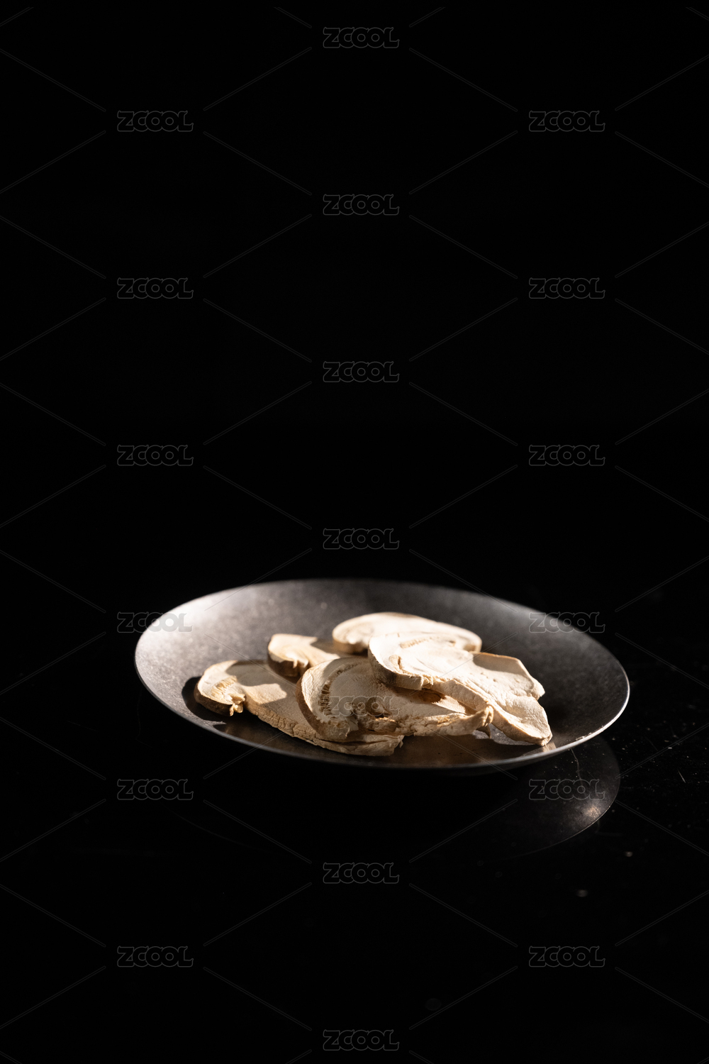桌面上的的盘子里的干爽的白术
