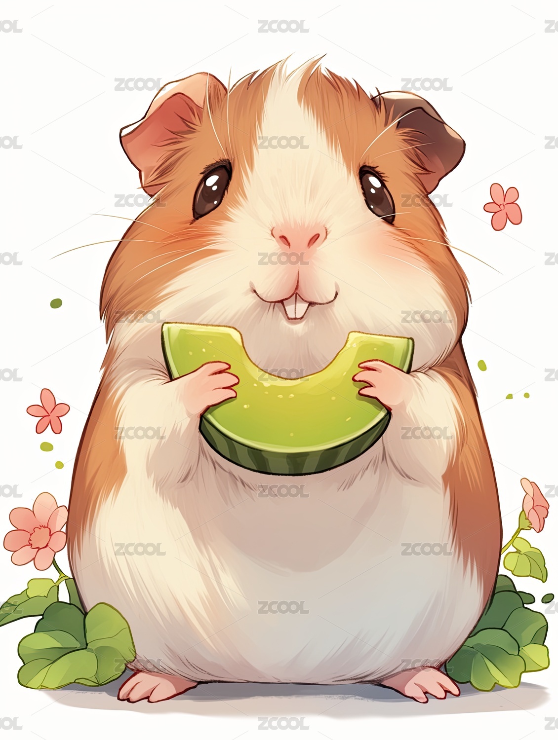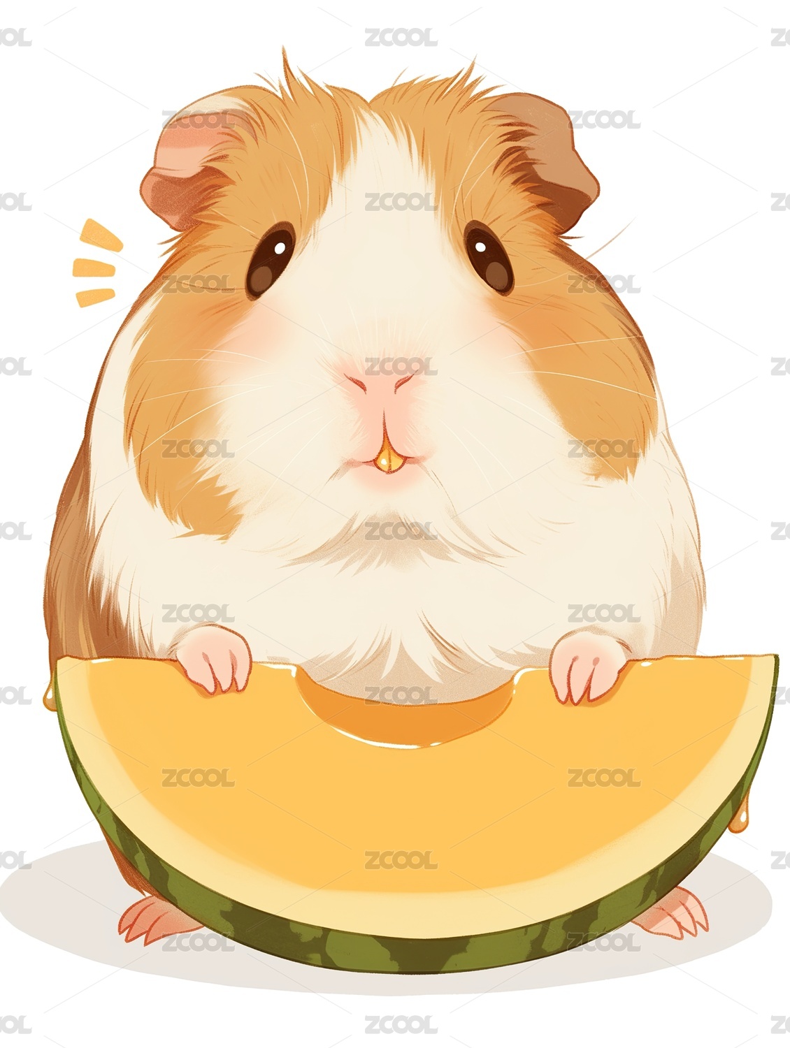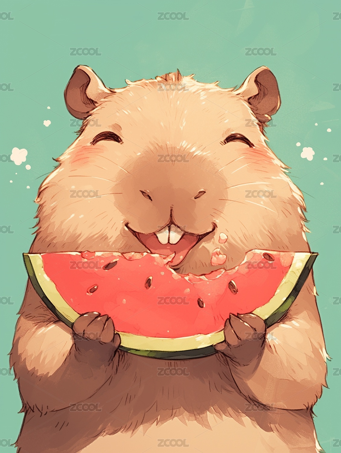 水豚,西瓜,可爱,动物,萌,超萌,豚鼠,萌新,动漫,Midjourney