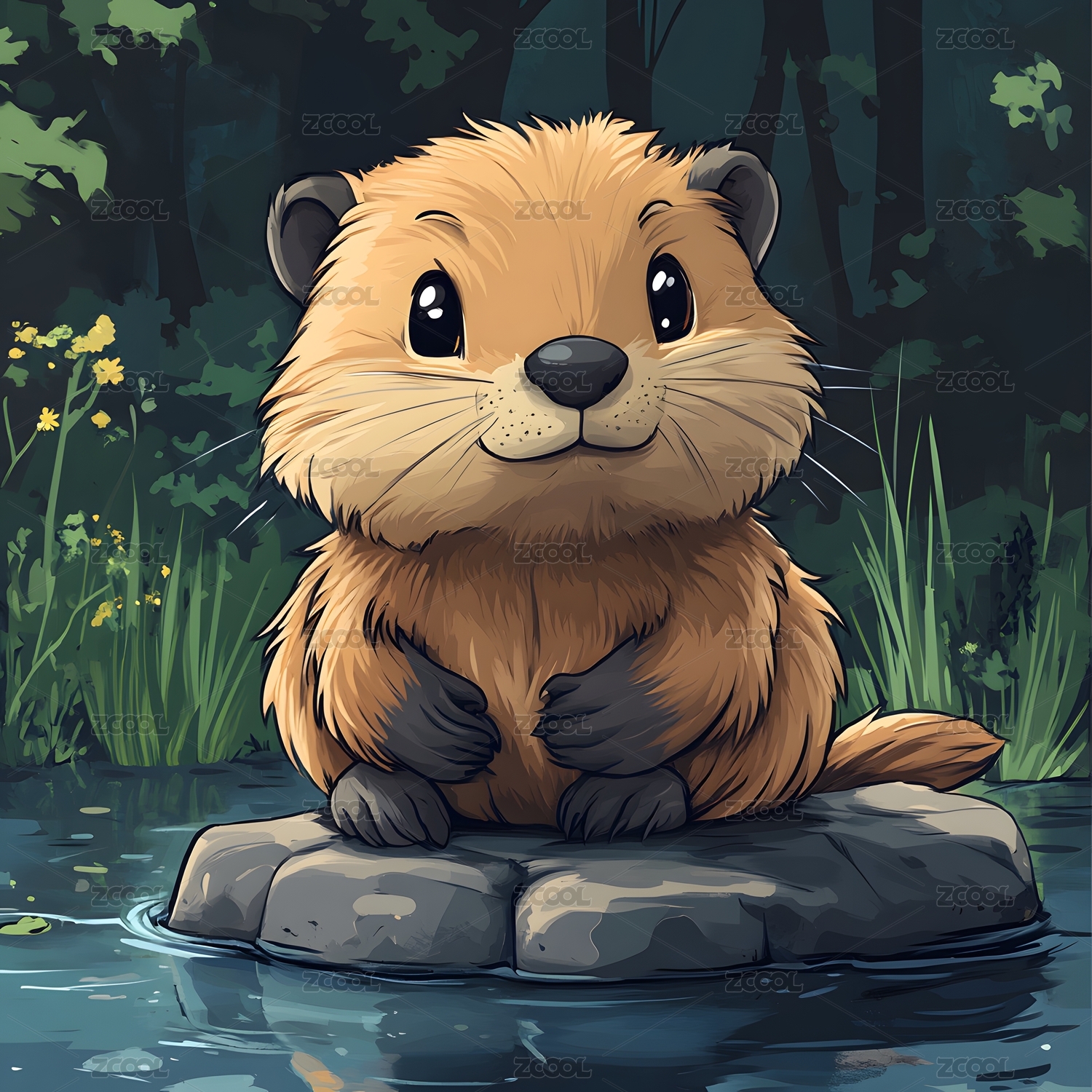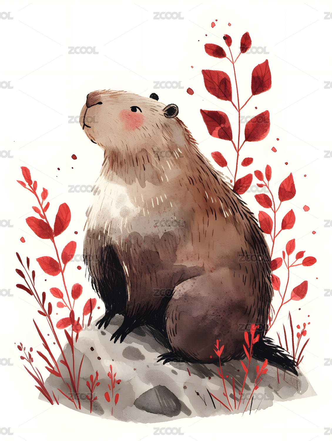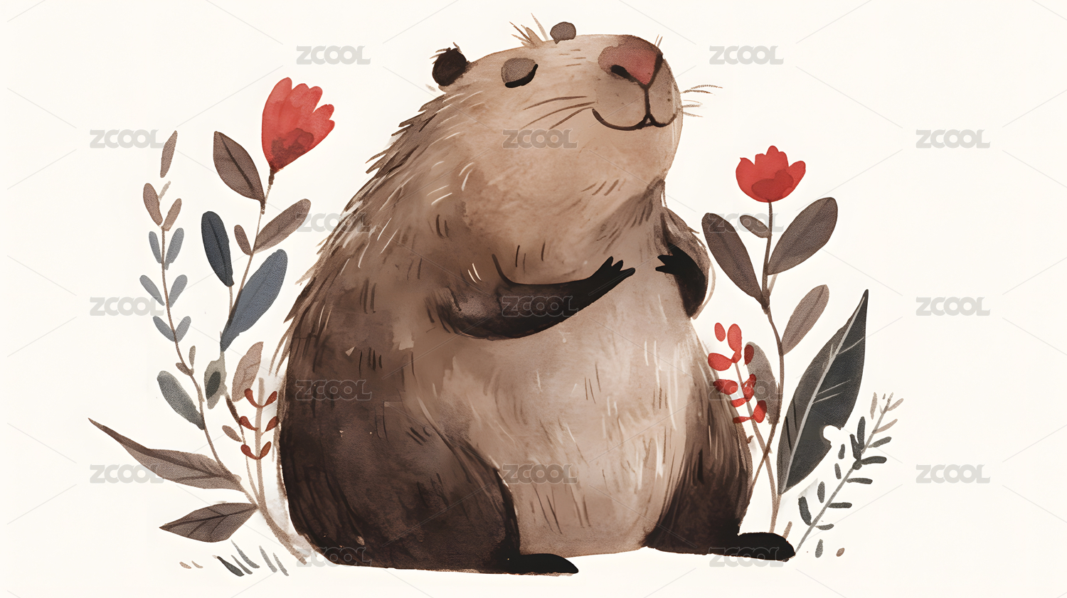 水豚,西瓜,可爱,动物,萌,超萌,豚鼠,萌新,动漫,Midjourney