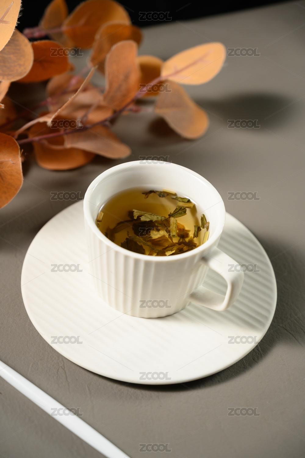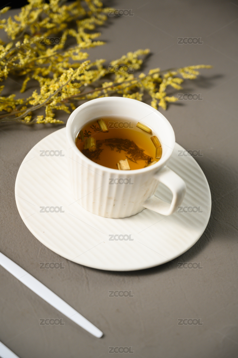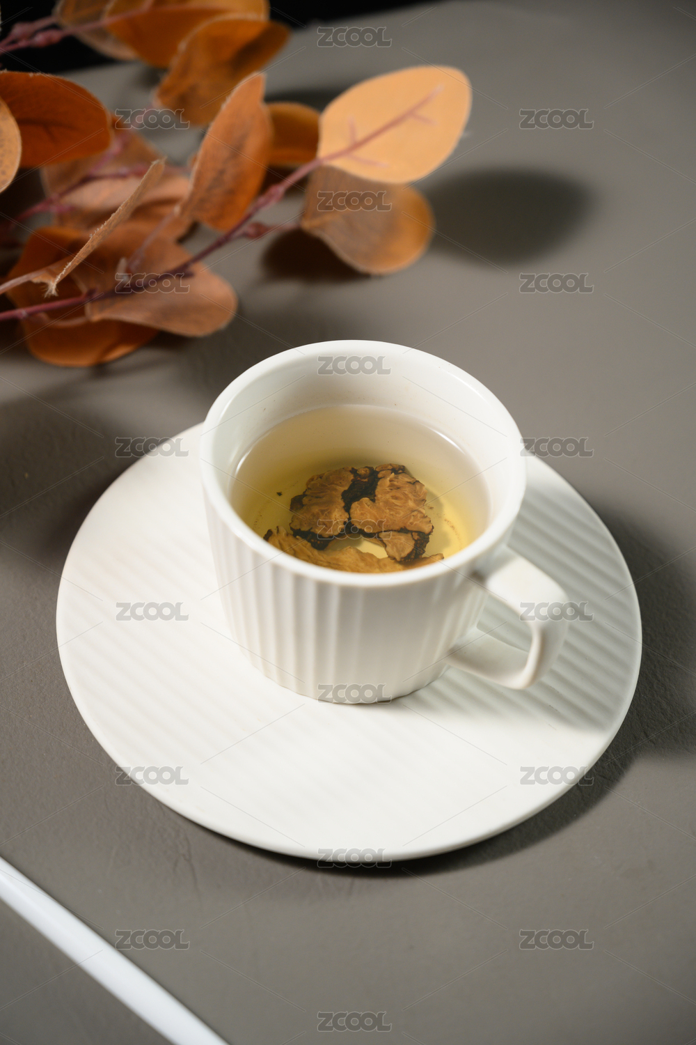 桌面上的杯子里的的甘甜可口的西洋参茶