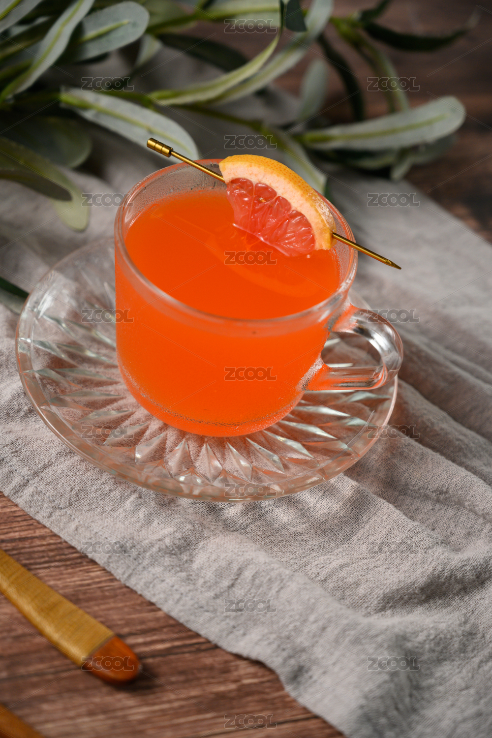 桌面上的杯子里的美味可口的西柚汁
