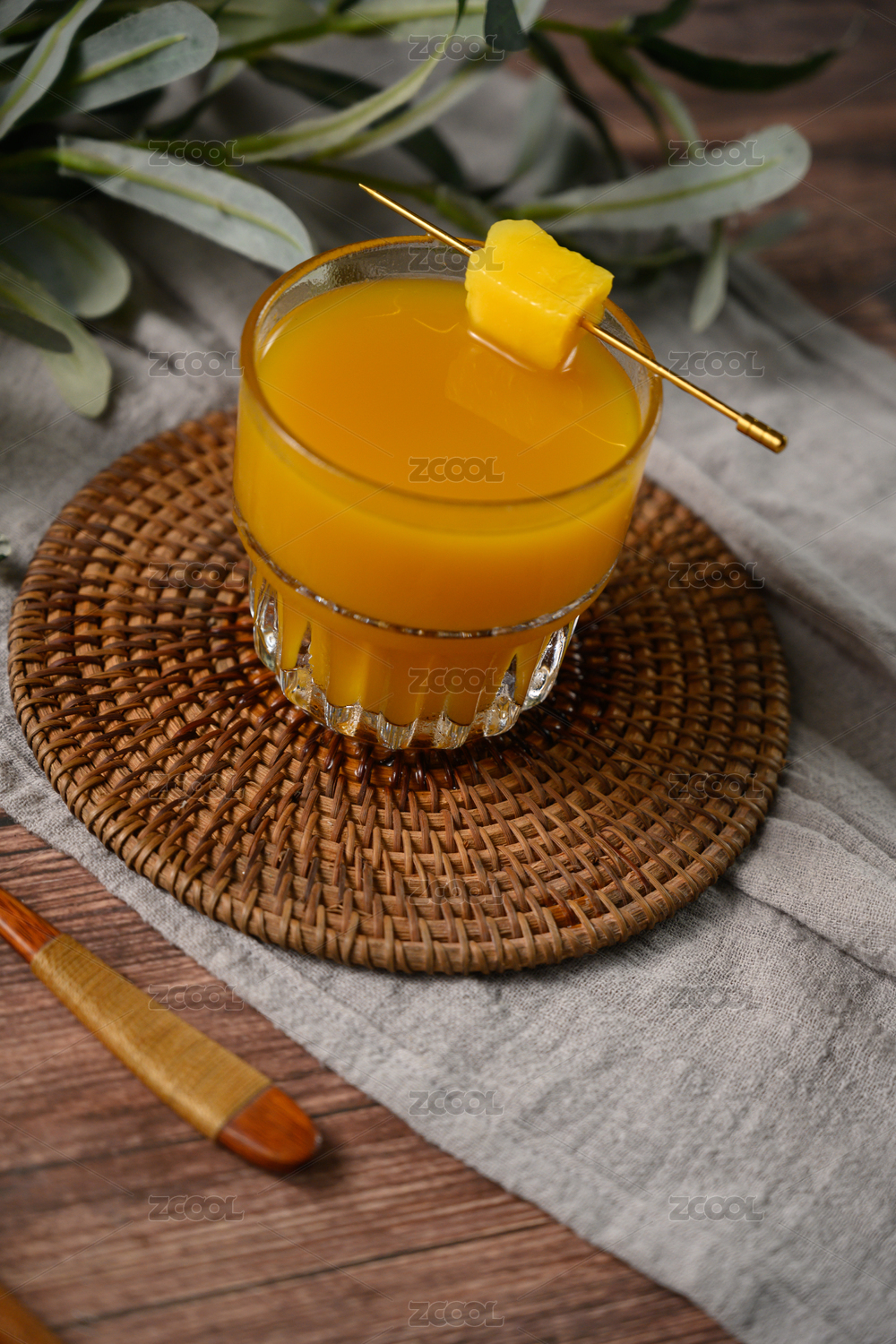 桌面上的杯子里的美味可口的芒果汁