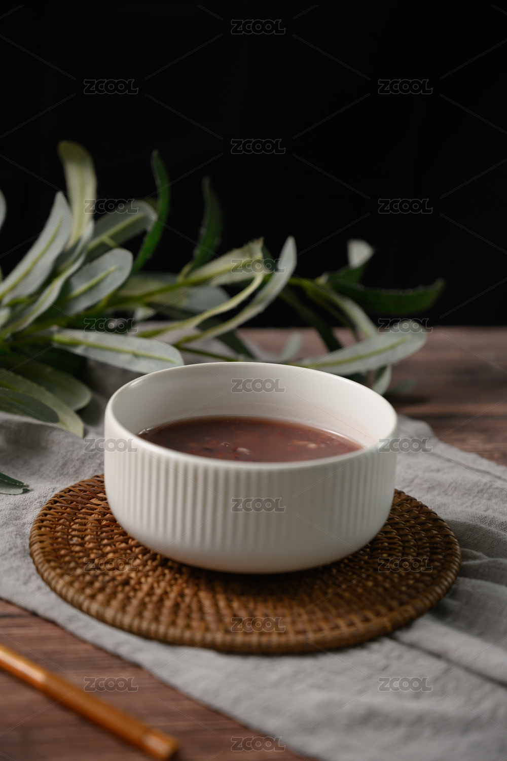 桌面上的碗里的美味可口的海带绿豆沙