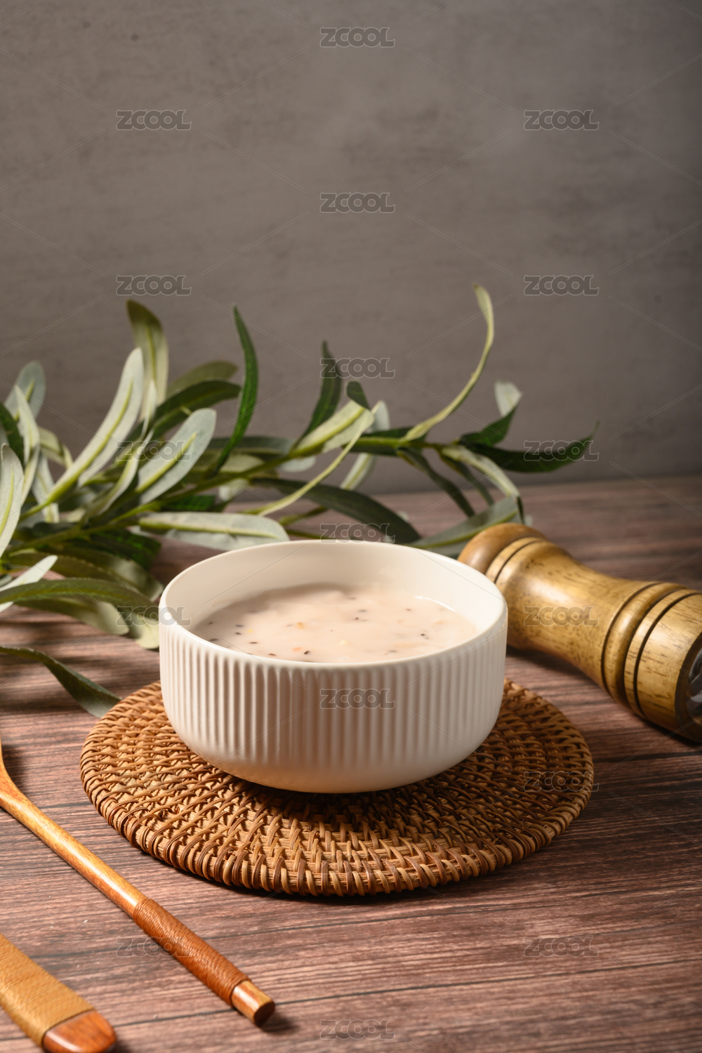桌面上的碗里的美味可口的薏米小米粥