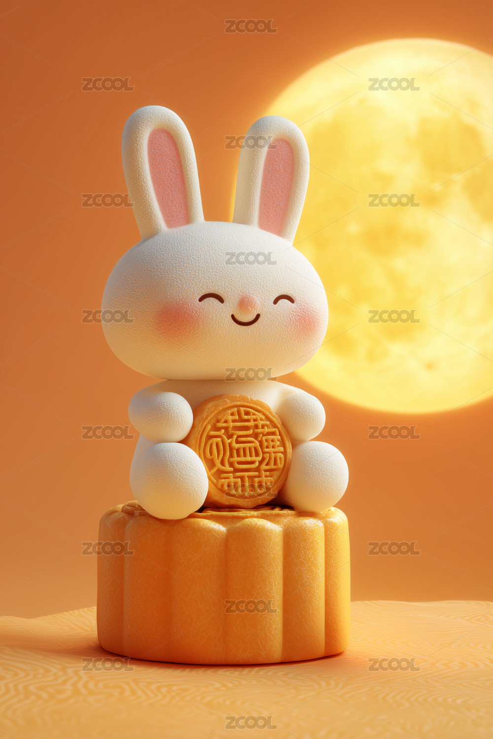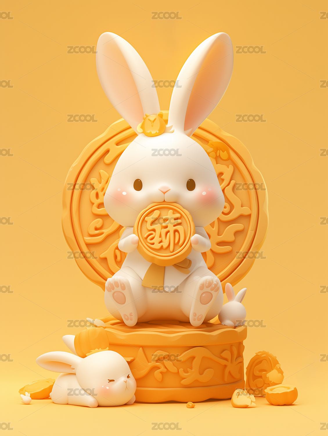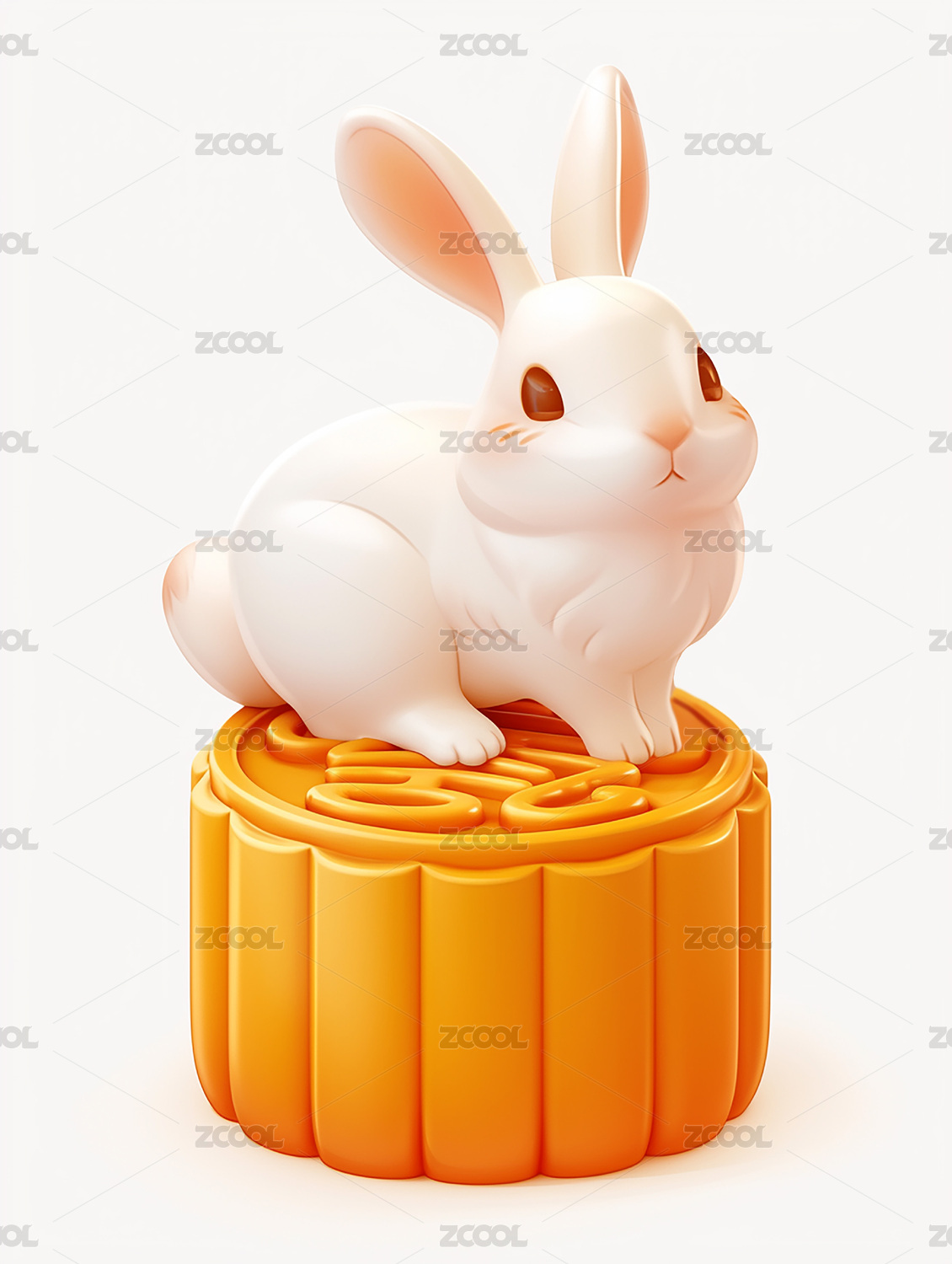 黄色,兔子,中秋,玉兔,月饼,中秋月饼,纯色背景,中秋节