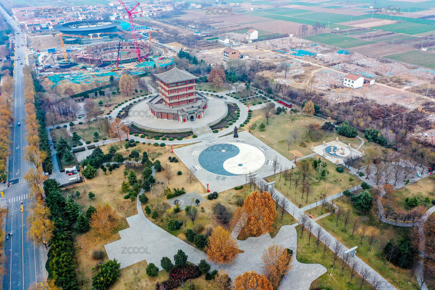 航拍中国河南温县陈家沟太极拳文化国际交流中心