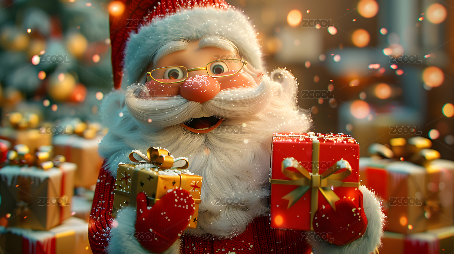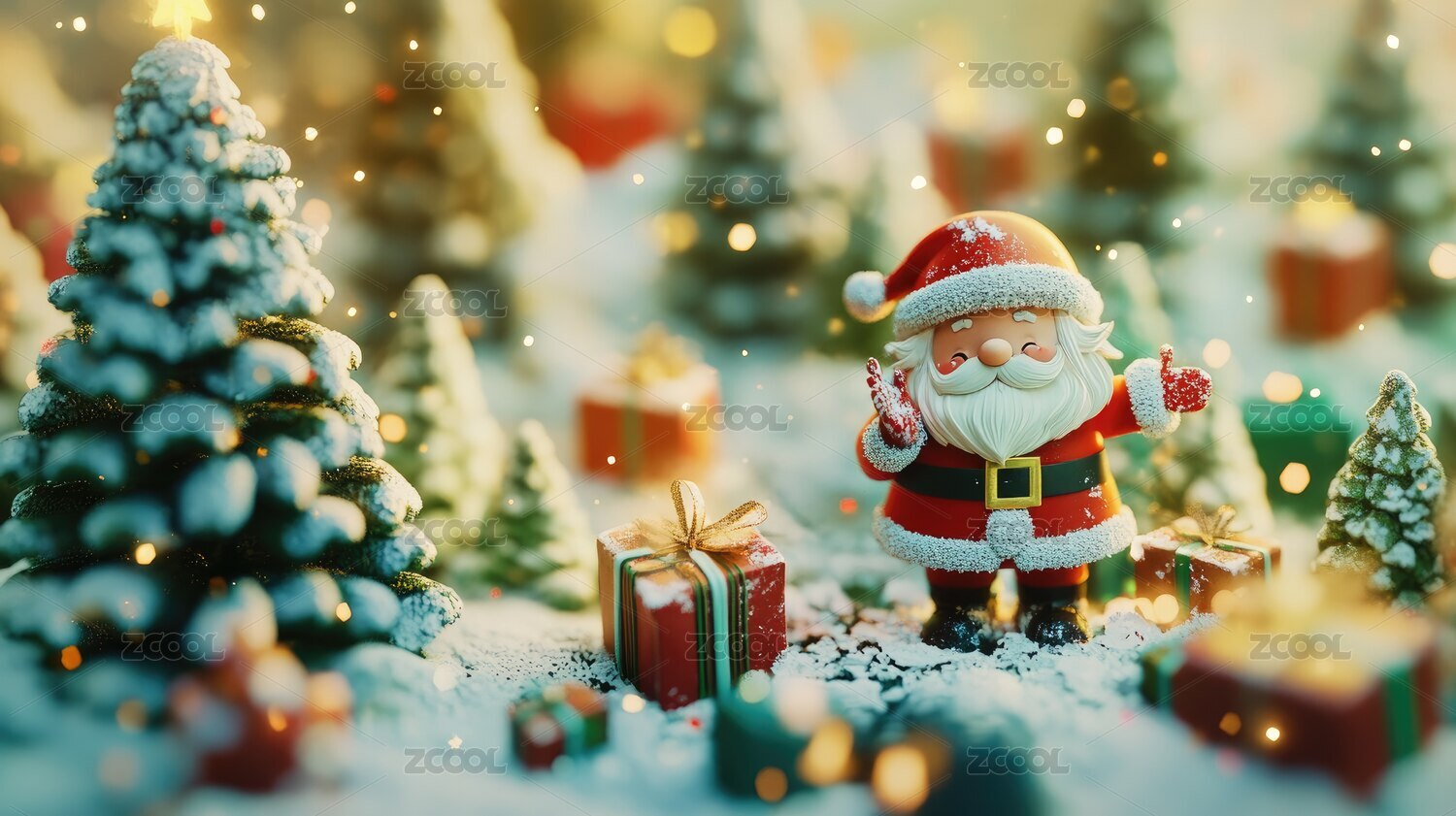 冬天3D圣诞节圣诞老老人礼物