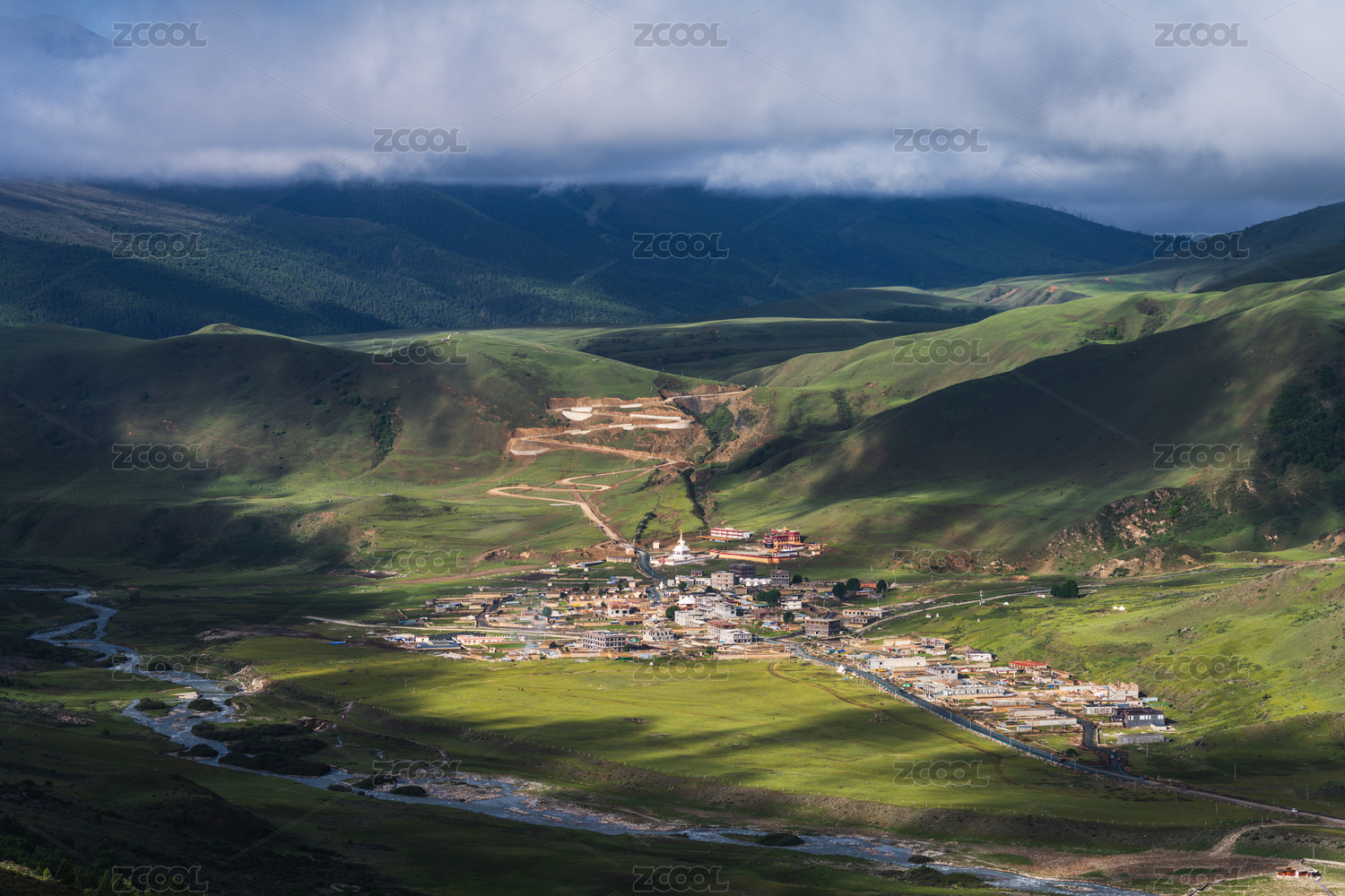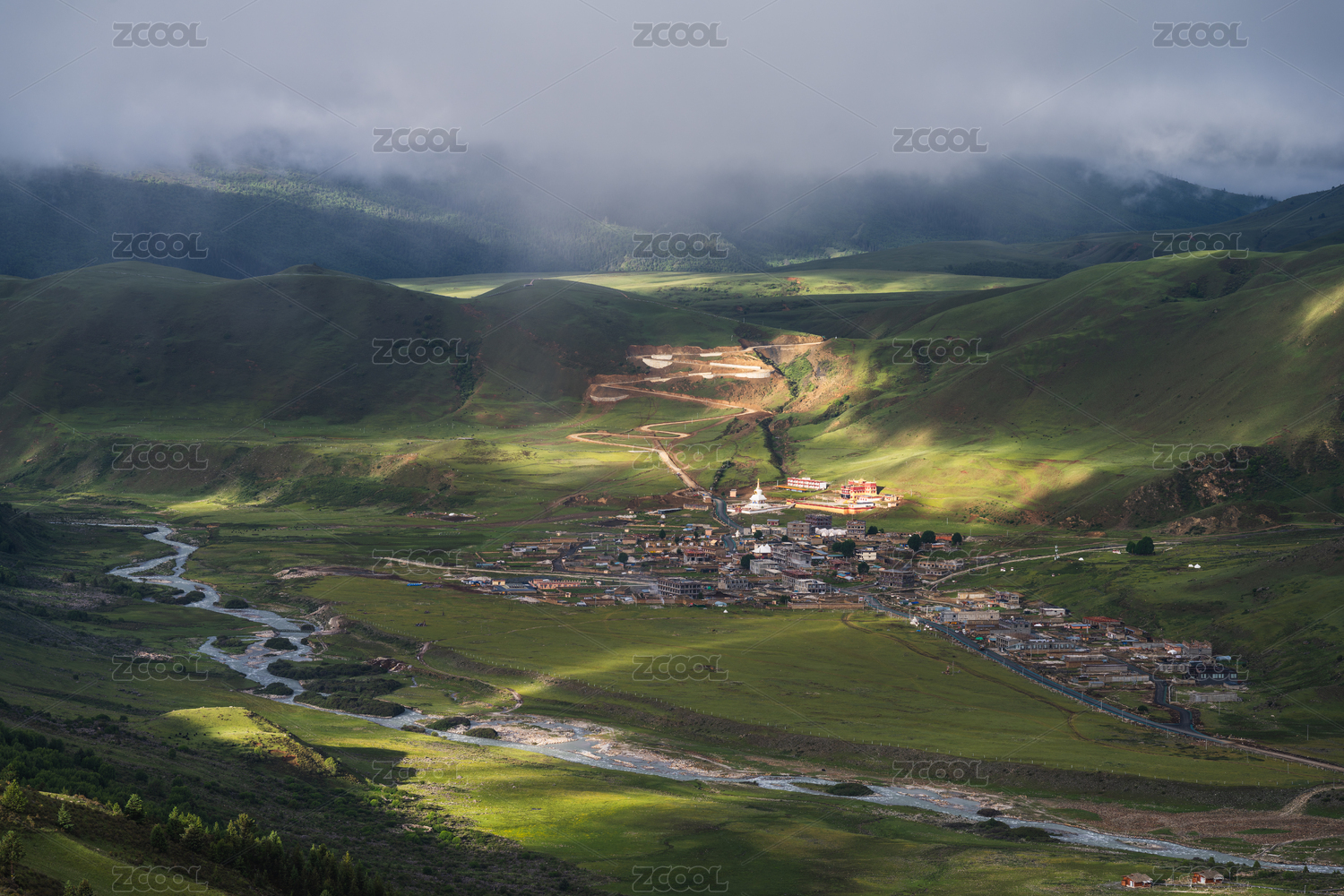 阿坝藏族羌族自治州郎依寺的晨景俯拍