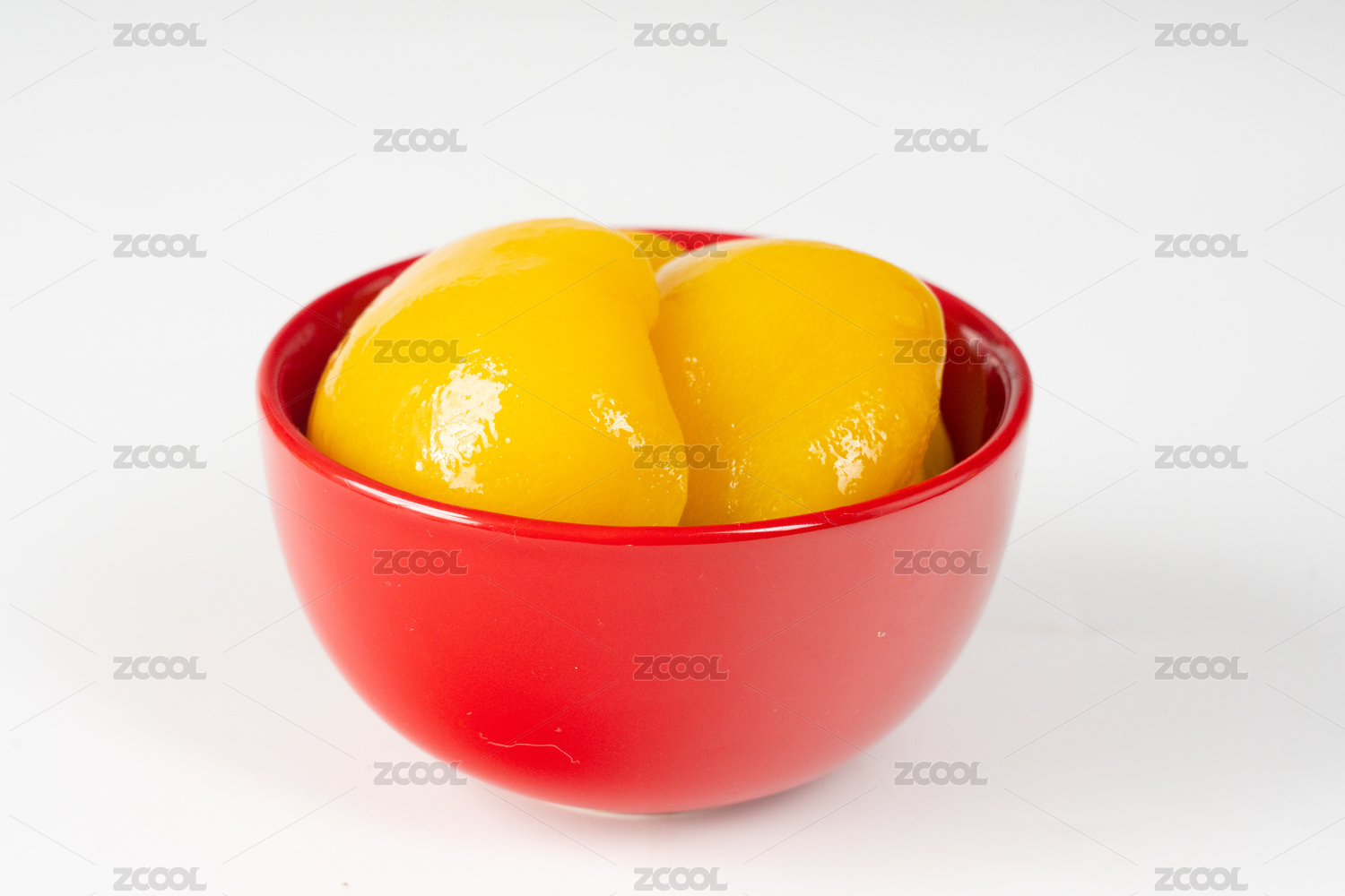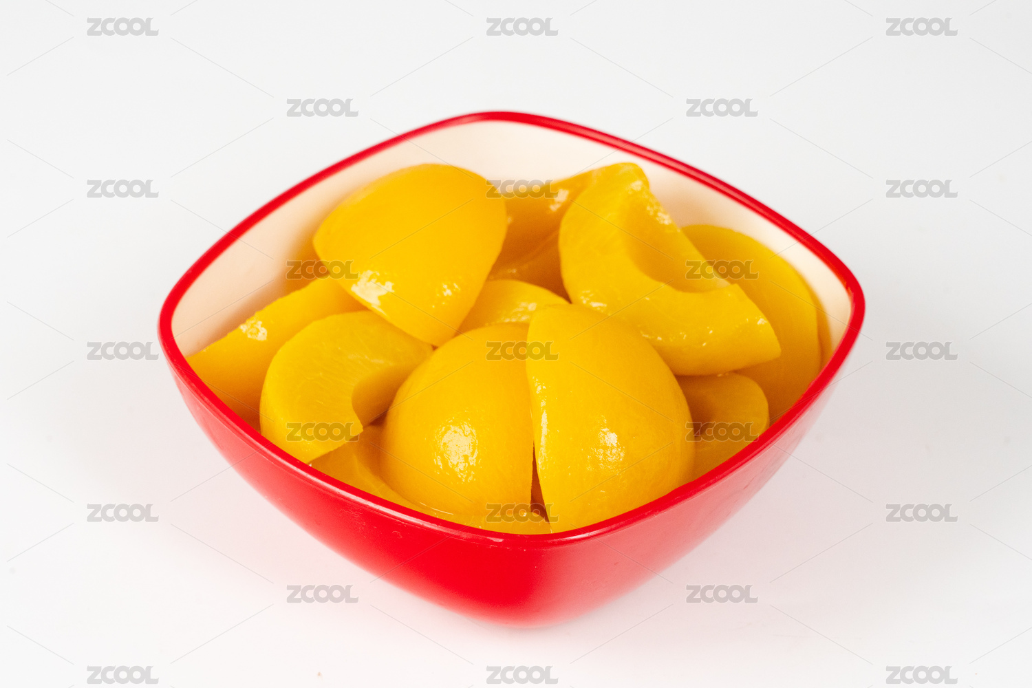 桌面上摆放着一碗下午茶甜品美食黄桃罐头