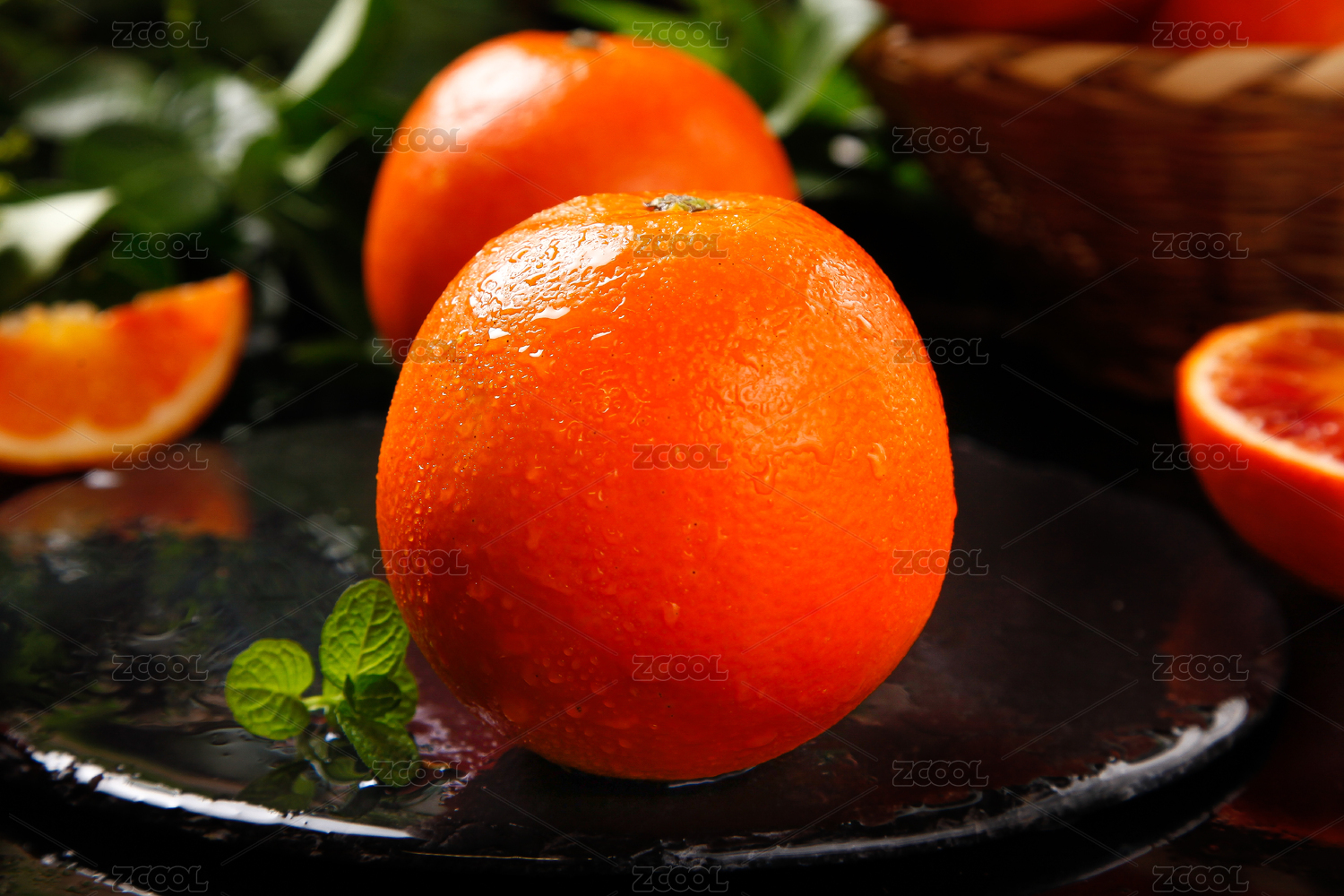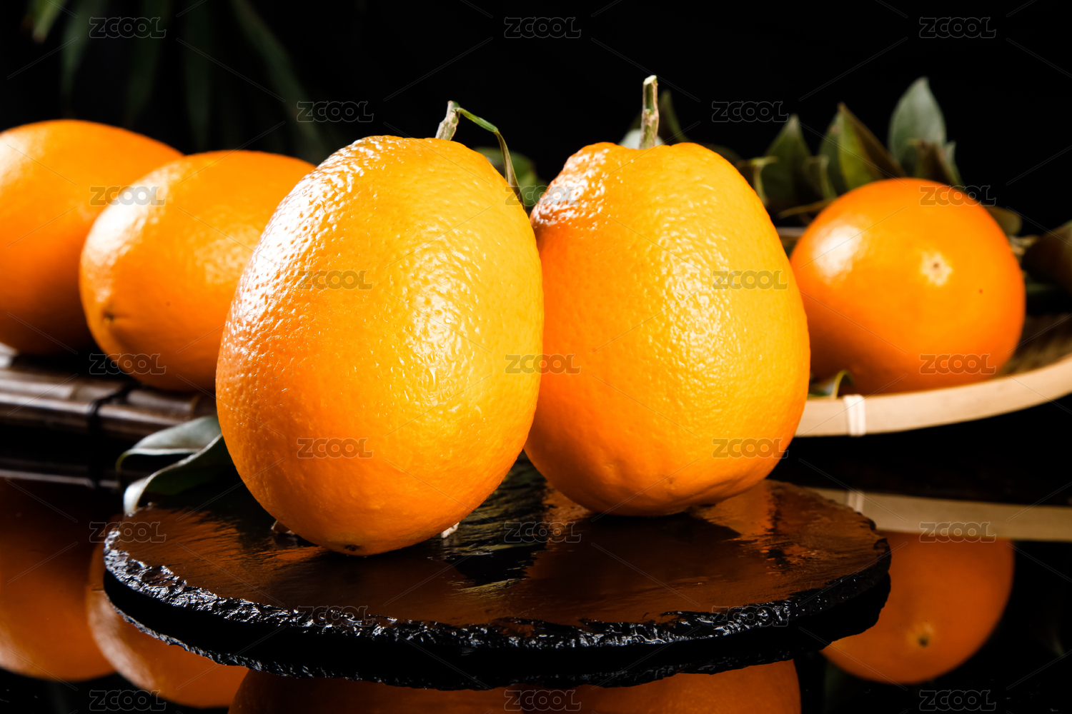黑底上放着湖南冰糖橙和一个切面的冰糖橙