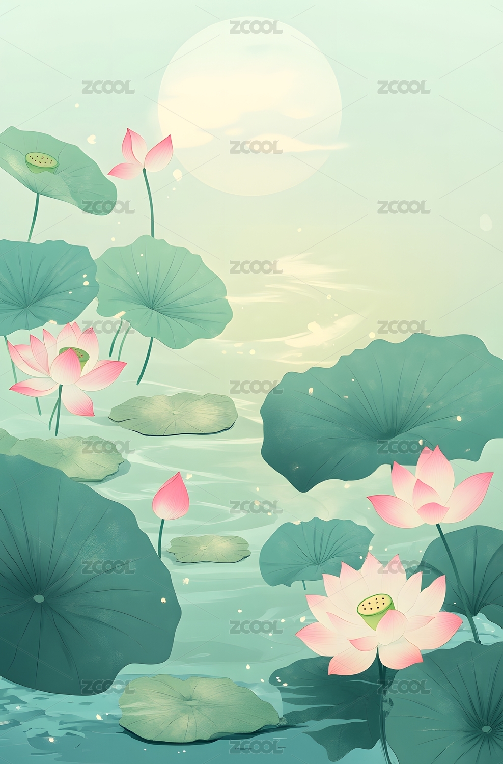 竖幅,插画,素材,肌理,植物,夏天,自然,背景,风景,绿色