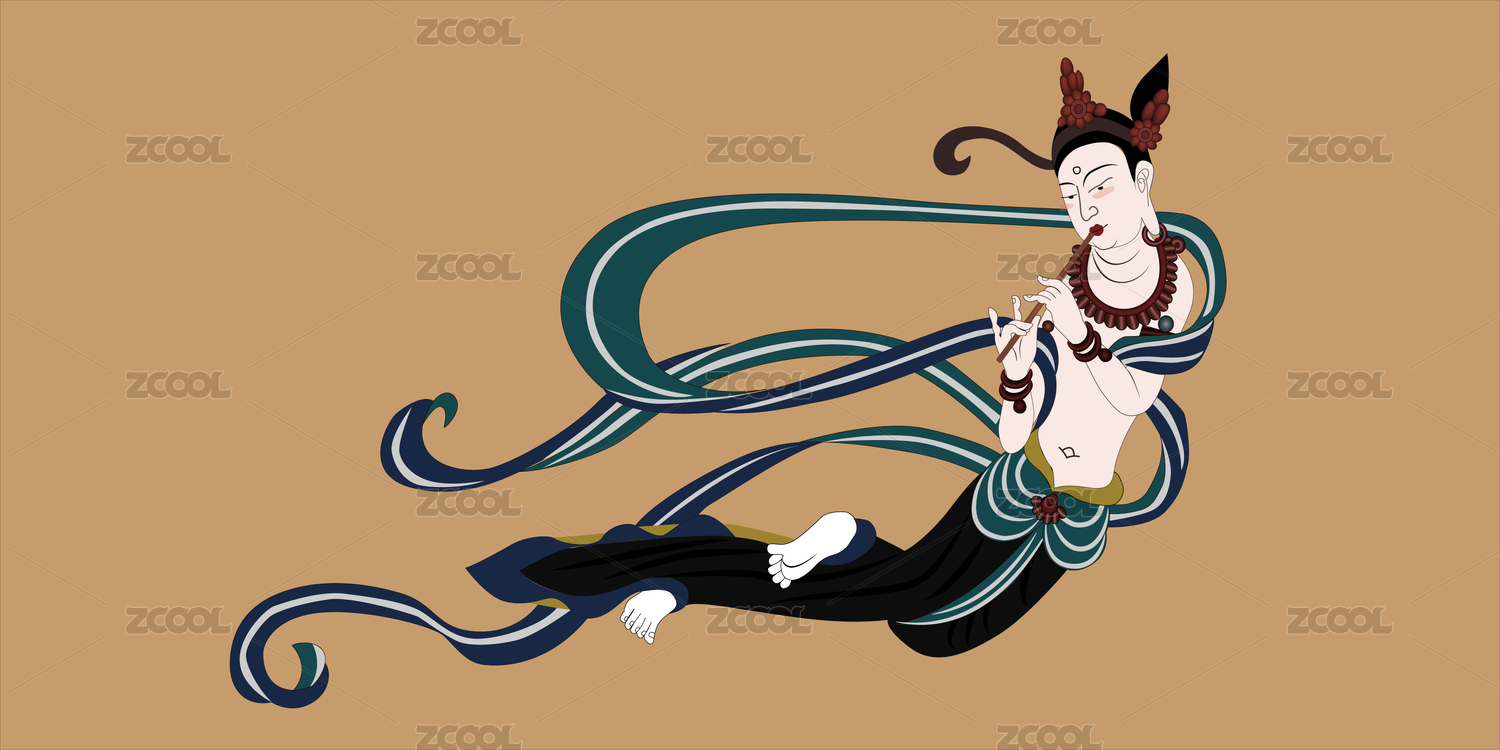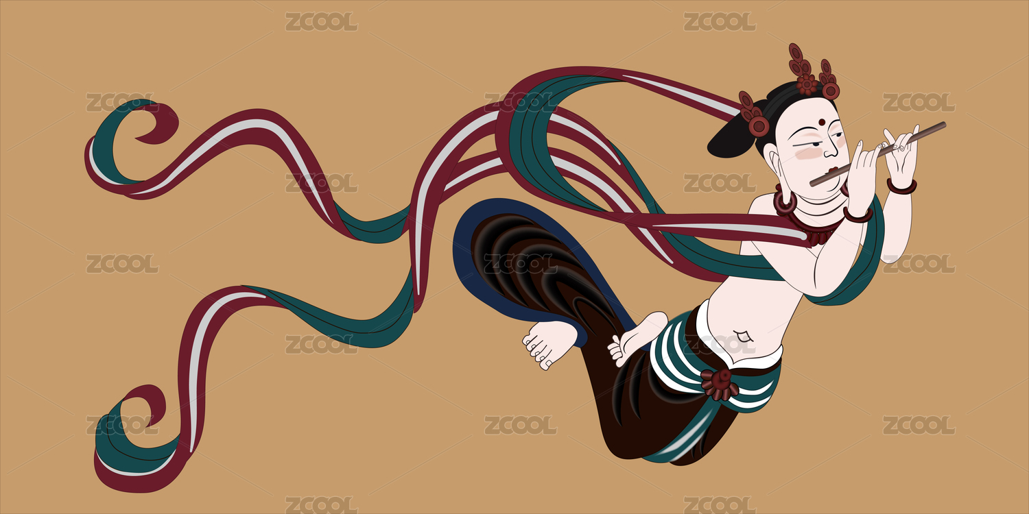 敦煌,壁画,仙女,矢量图,艺术,佛教,飞仙,彩带,飘逸,舞蹈