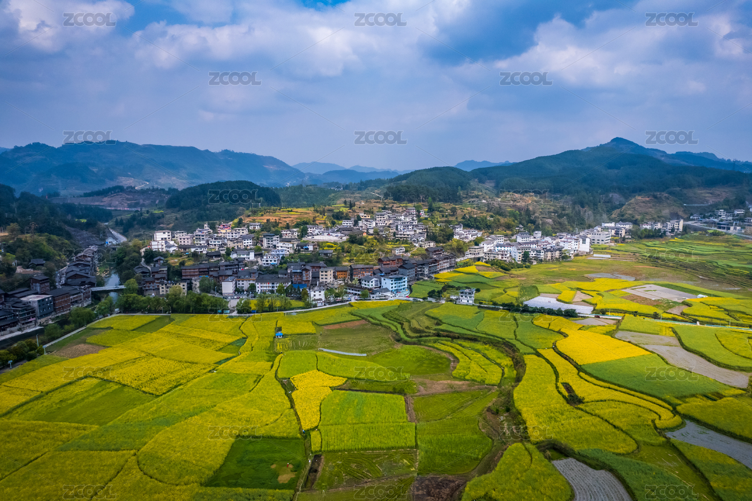 航拍贵阳市息烽县九庄镇鸡场坝油菜花