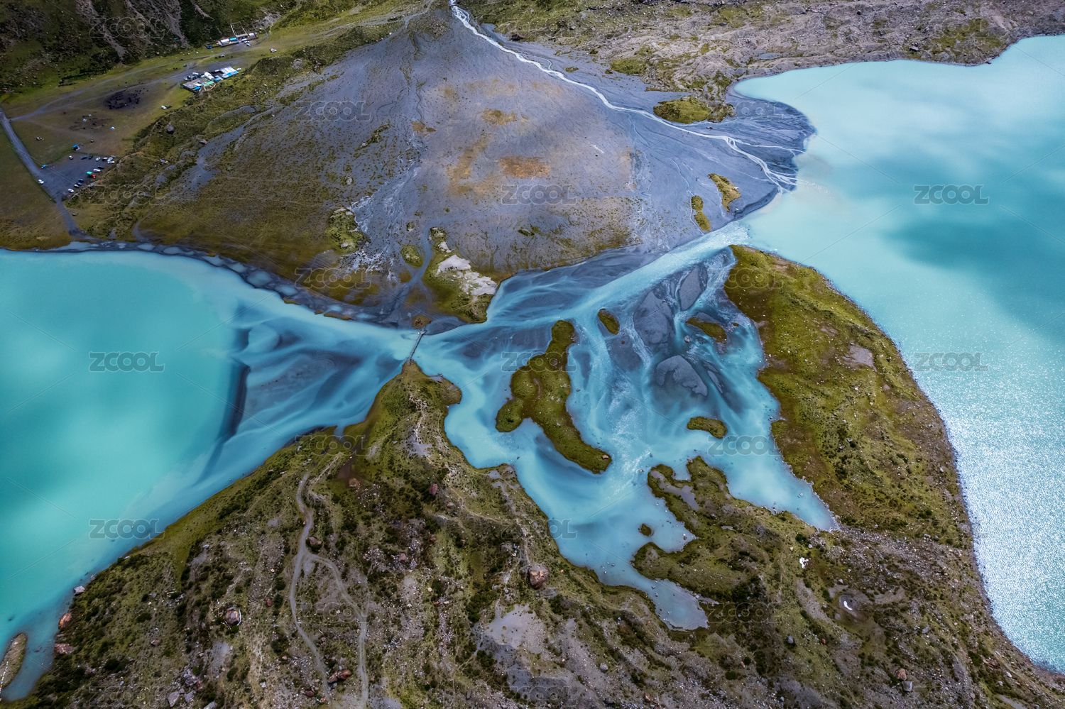 航拍秋天的中国西藏萨普神山景区河流湿地