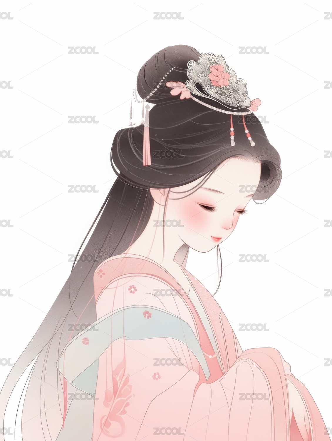 粉色古典女生插画