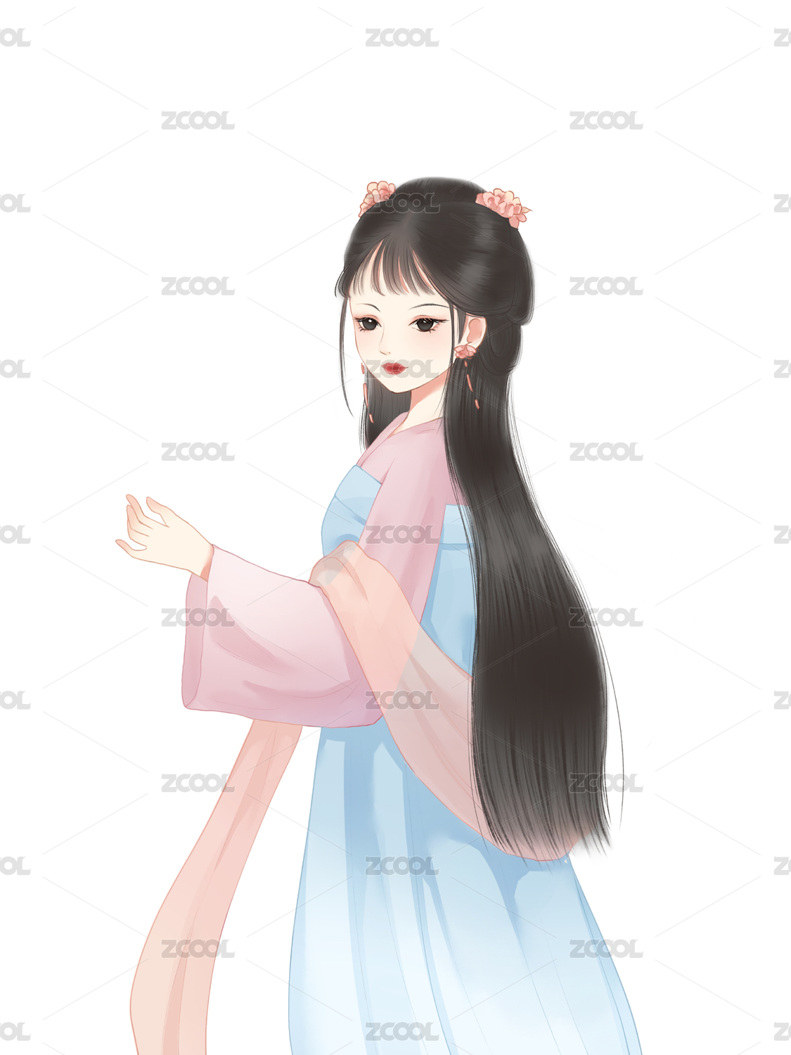 美丽的古装汉服女孩插画