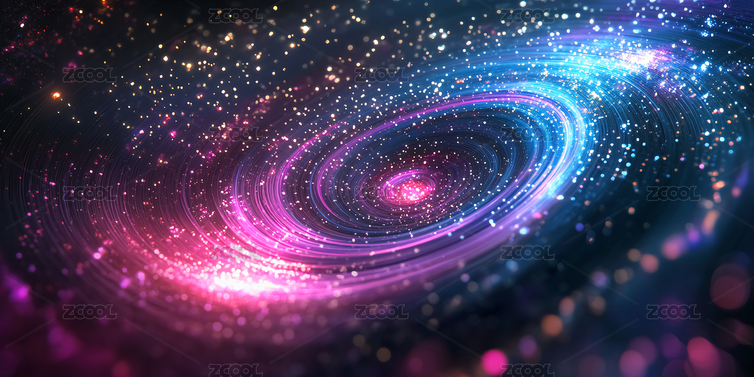 蓝色科技全息抽象霓虹光效粒子光纤圆背景