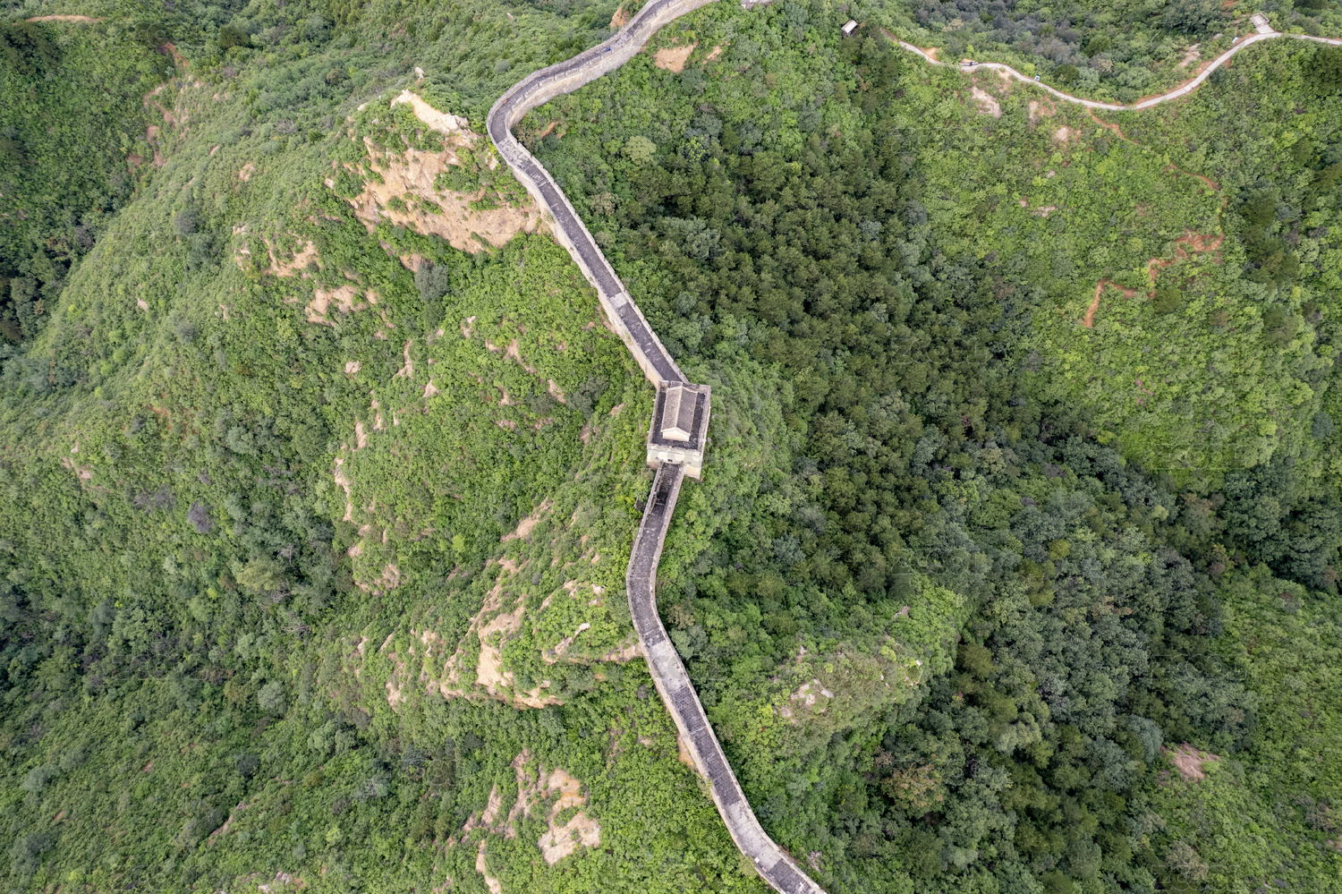 夏天清晨金山岭长城航拍视角风景