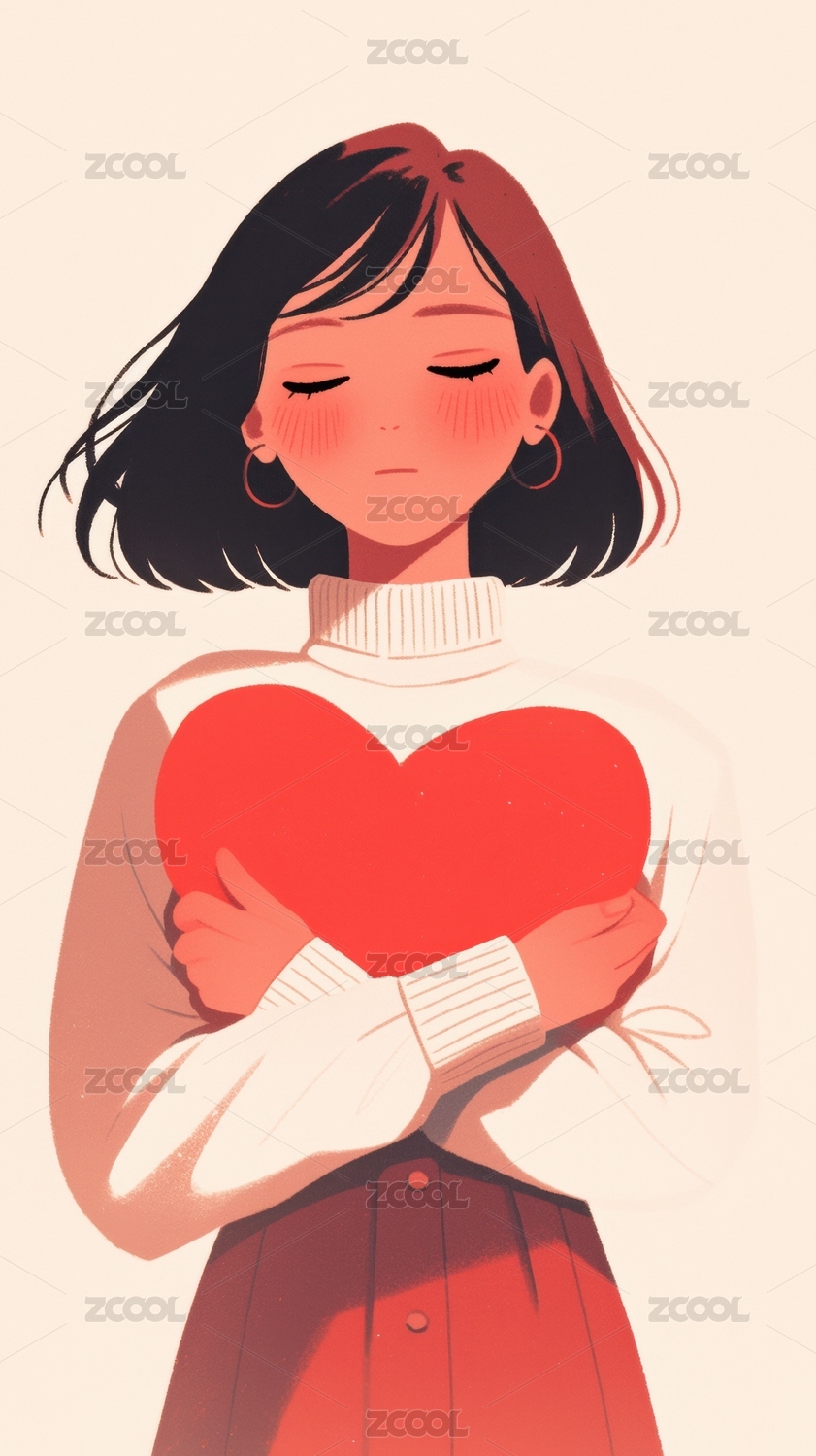 怀抱红色爱心的短发女孩