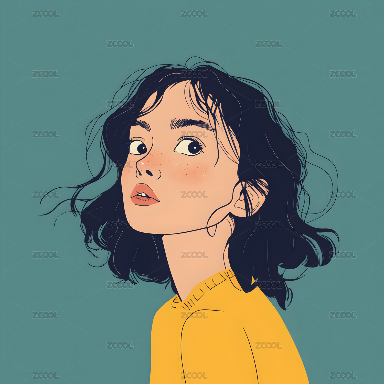 黄色少女时尚肖像大头照矢量扁平化设计背景